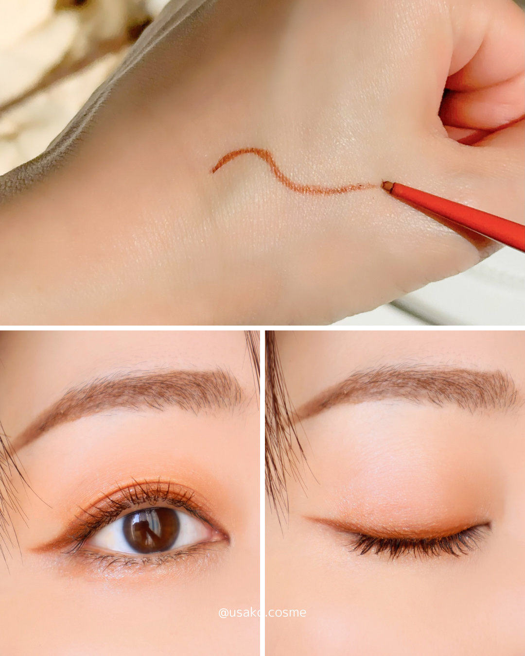 明るい柔らかなパステルトーンのカラーで、ふんわり発色して、かわいい😊💕 ピンクとオレンジの中間みたいな、まさにピーチカラー💓 全体的にコーラル系のオレンジっぽいカラーなんだけど、マットや細かいラメが入っていたり、つけるとそれぞれちゃんと違う色。 グリッターは固めで大粒なので、指でトントン付けがおすすめ。涙袋につけてもかわいい😍 クリアな印象の明るい目元になるよ🥰 パステル系のアイシャドウパレットが好きって人はピッタリだと思う🙆 適度な彩度で透明かついきいきとした印象のコーラルピーチトーンの桃色カラーバリエーション 搾りたての桃果汁カラーに、輝く日差しのかけらグリッターを加えたデイリーコーラルピーチパレット