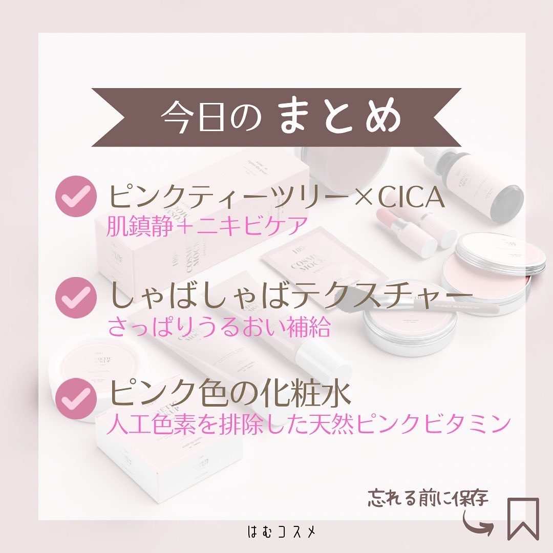 ティーツリーや、シカエキスを配合でニキビ、肌荒れ悩みをケアしてくれるトナー🩷 ピンク色は自然成分「ビタミンB12」本来の色だそう✨ サラサラテクスチャーで、さっぱりした使い心地✨