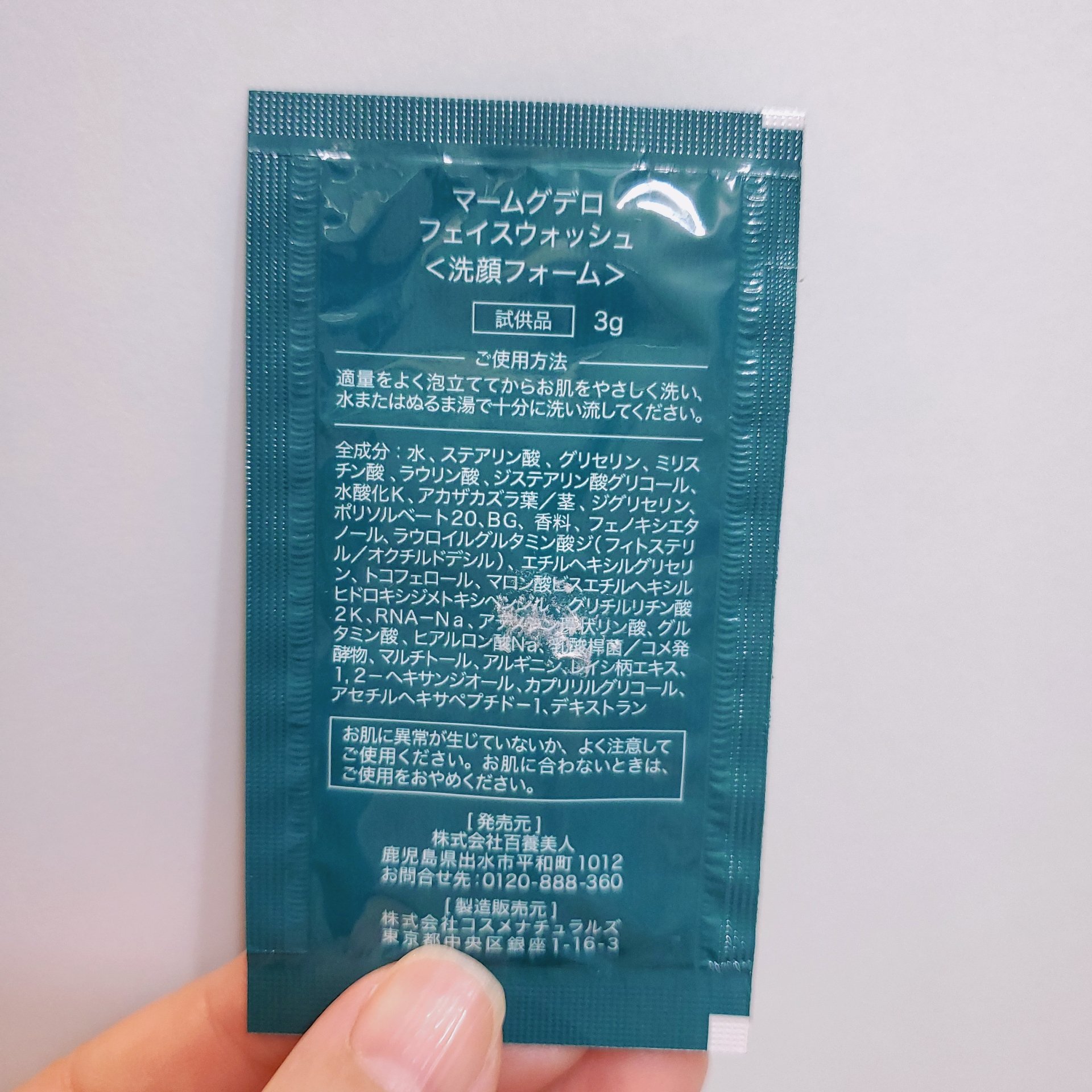 - 水、ステアリン酸、グリセリン、ミリスチン酸、ラウリン酸、ジステアリン酸グリコール、水酸化K、アカザカズラ葉/茎、ジグリセリン、ポリソルベート20、BG、香料、フェノキシエタノール、ラウロイルグルタミン酸ジ(フィトステリル/オクチルドデシル)、エチルヘキシルグリセリン、トコフェロール、マロン酸ビスエチルヘキシルヒドロキシジメトキシベンジル、グリチルリチン酸2K、RNA-Na、アデノシン環状リン酸、グルタミン酸、ヒアルロン酸Na、乳酸桿菌/コメ発酵物、マルチトール、アルギニン、レイシ柄エキス、1,2ーヘキサンジオール、カプリリルグリコール、アセチルヘキサペプチドー1、デキストラン