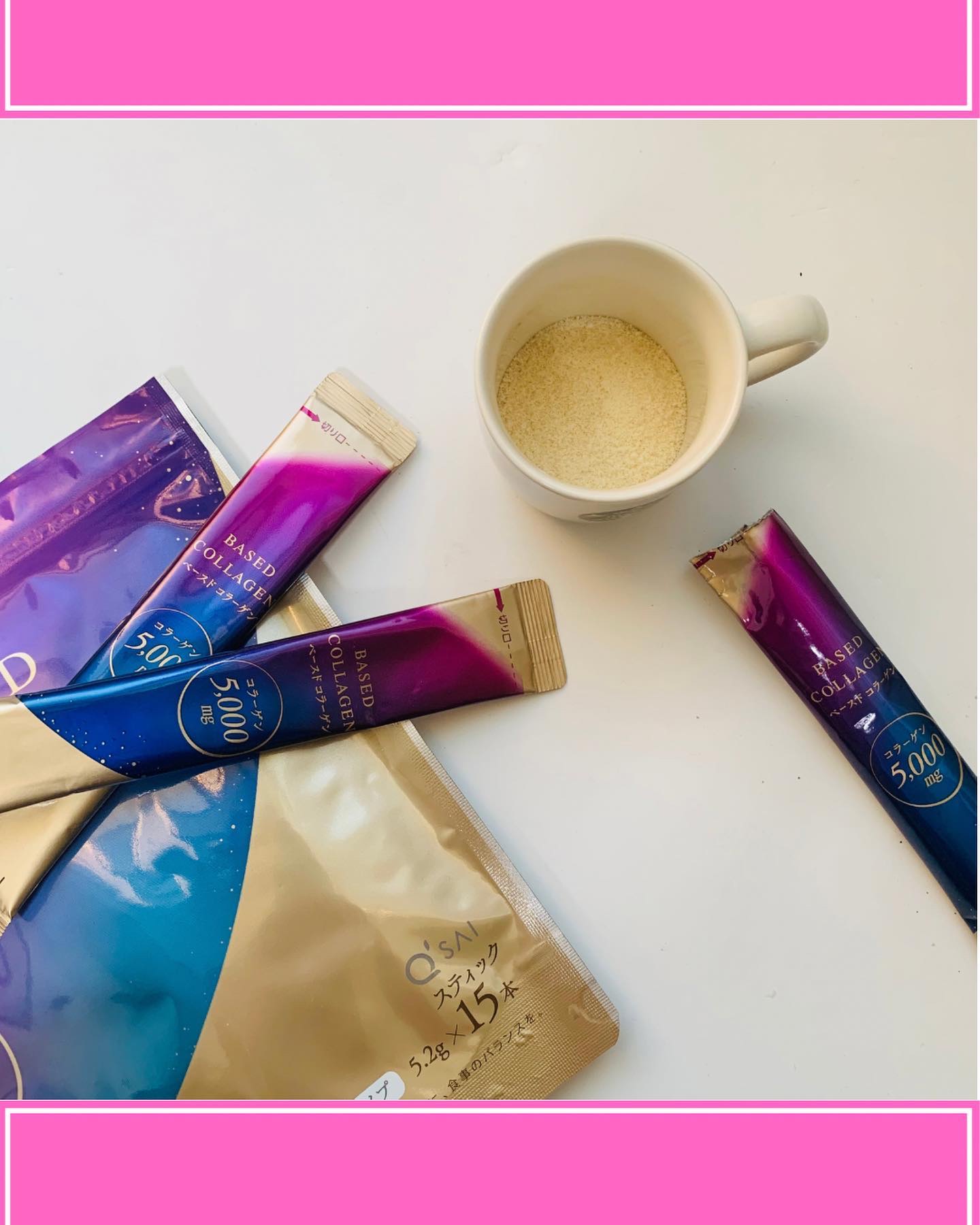 コラーゲン摂るならコレってくらい、推してるやつ。コラーゲンパウダーだけど、匂いがなくて味も損なわないから何にでも入れれるよ♡ ゼリー同様に甘酸っぱくて美味しいんだ♡ 1スティックを500ミリで溶かすんだけど、普通にジュース感覚で飲めるから、ただただご褒美!笑 おいしくコラーゲン摂取もダイエットもできて、いつも持っていくペットボトルの飲み物に混ぜるだけだから、本当に楽チン!