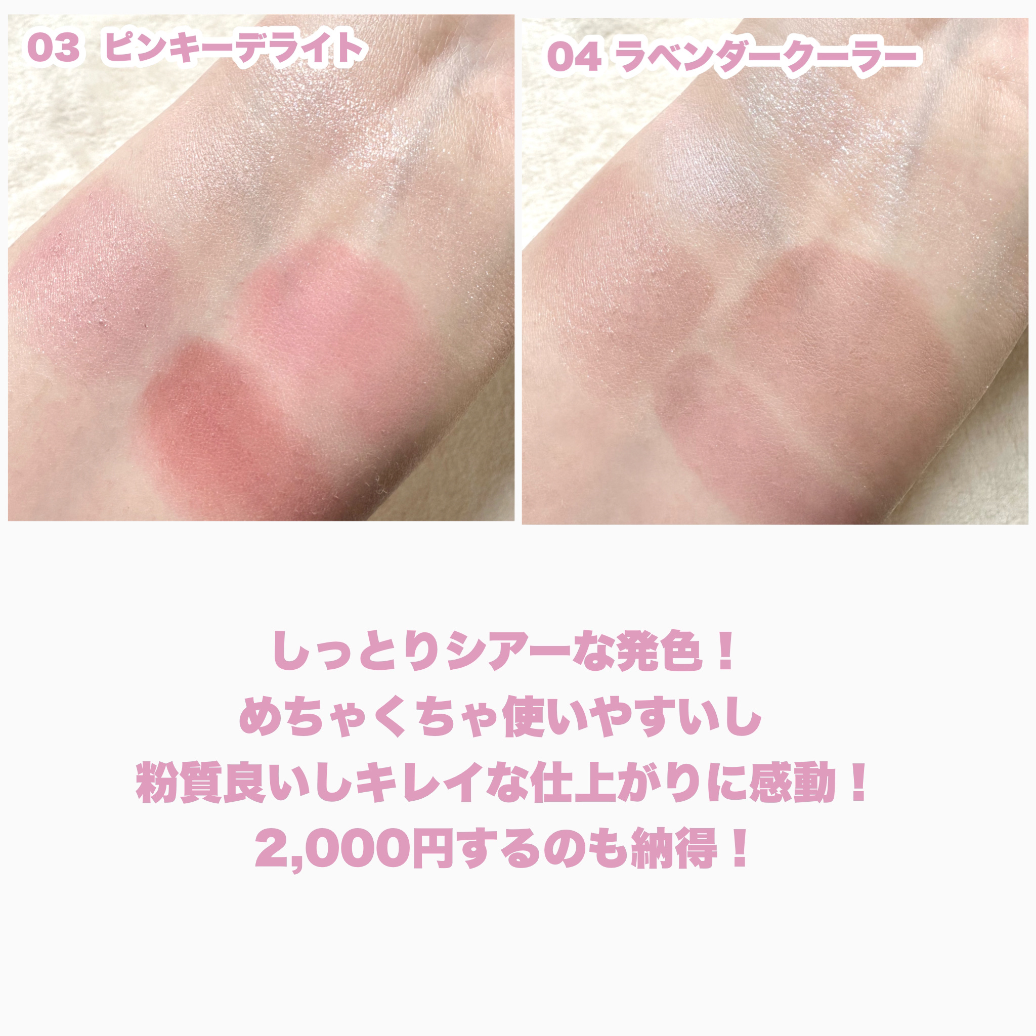 最近ピンクコスメ沼にハマり、様々なピンクを漁っております。今回買ったものはパケからして可愛いし、カラーもジュワッとした血色感が出て、ほんと可愛い! 見ているだけでときめく💞 パーソナルカラーはあまり気にせず、白みピンク系からコーラルピンク系など選びましたが、浮くこと無く使えそうです! 気になったらぜひチェックしてみてください🫶