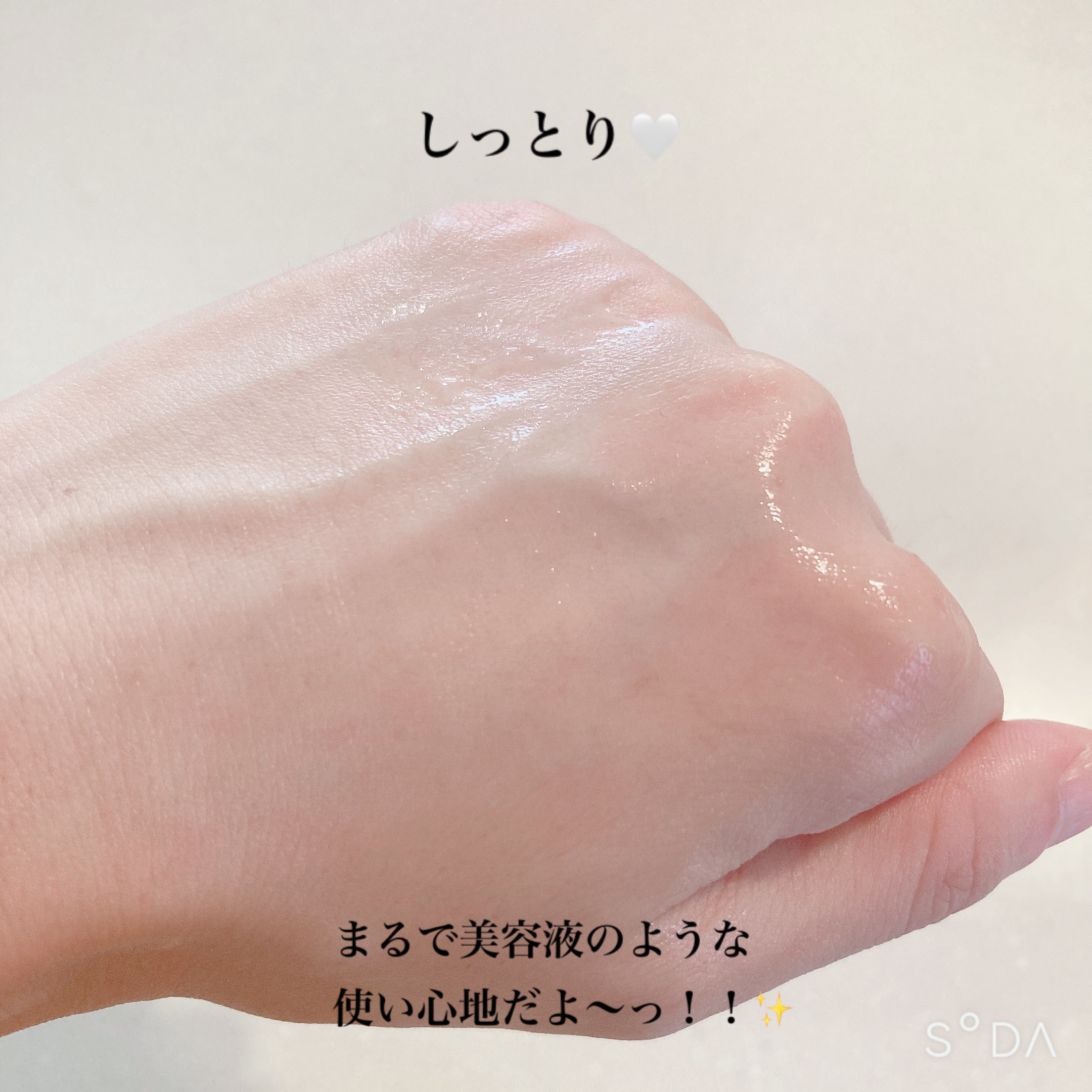| しばらくすると馴染んで表面もサラっとして、水分を含んだぷるぷるのお肌に♪ | 詳細を見る | |