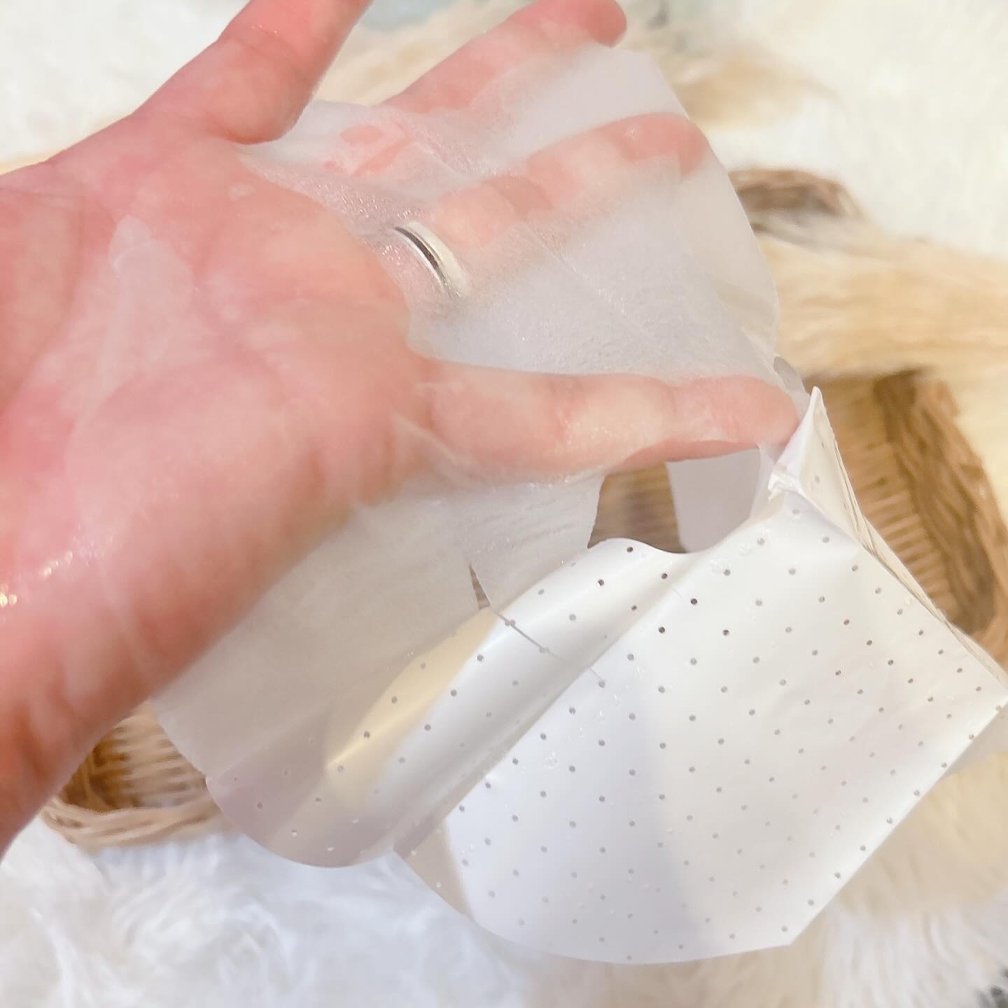化粧水代わりに使えるので、朝の忙しい時にも便利✨ 時短アイテムとして重宝しています♡♡ うるおい成分として、海藻エキスを配合。お肌を守るフィルムを形成し、保湿することで皮脂と水分のバランスを整えてくれます。 シートは厚めでふんわり♡美容液をしっかりと含んでくれています。 トゥルンとしたシートで柔らかくて使い心地もヨキ♡