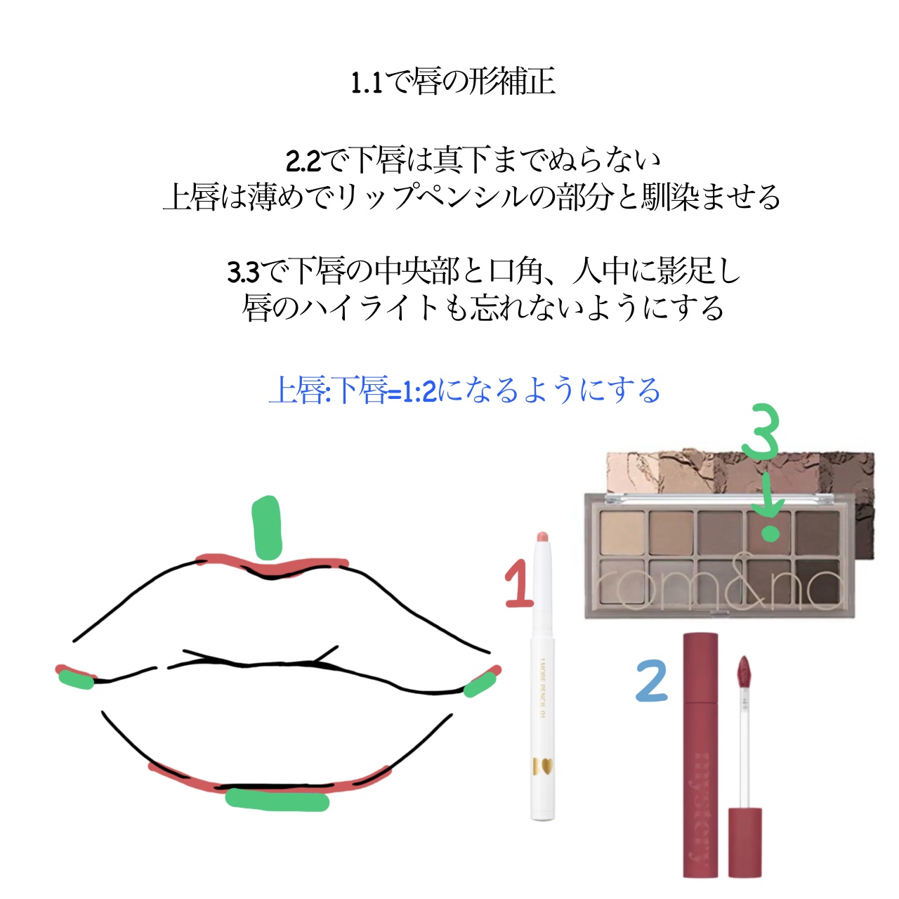 rom&nd ベターザンパレット04 DUSTY FOG GARDEN CANMAKE アイバックコンシーラー02 ピンクベージュ b idol 1moreペンシル リップシェイプ01 ピンク i’m meme アイムミステリーブラーティント005 ミステリープラム マスカラは下向きに塗ってあんまり上げないようにしてから上にあげる