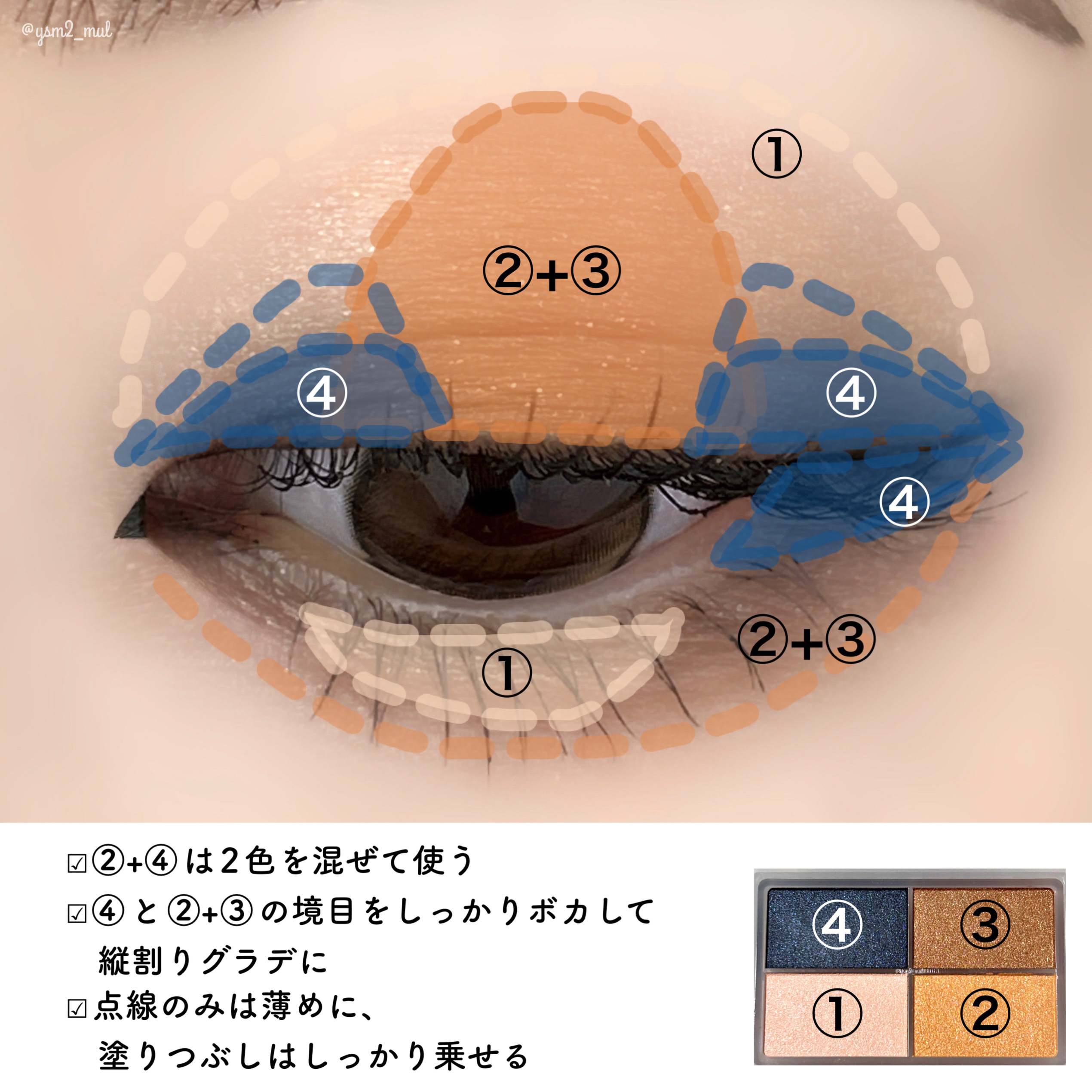 ⏩効果・目の横幅が強調されるデカ目効果メイク・顔の横幅の余白を減らし小顔効果・キリッとクールで大人っぽい印象の目元に ⏩アイシャドウポイント・上まぶたは目頭をめっちゃ濃くして目力UPと目尻の跳ね上げ・下まぶたは目尻太めの涙袋 ⏩アイラインポイント・切開ラインは長く下向きに・目頭側は上下ともにインライン・目尻は大胆に跳ね上げ&やや囲みくの字・涙袋の影は平行四辺型を意識して黒目の終わりを太く、そこから鋭角に上げる ⏩マスカラポイント・とにかく目尻側上下を長く・目頭はビューラーなし、マスカラ控えめ・ブラックだとなお良い ⏩その他・カラコンは裸眼とほぼ同じサイズの小さめ色は明るめが良いと思う