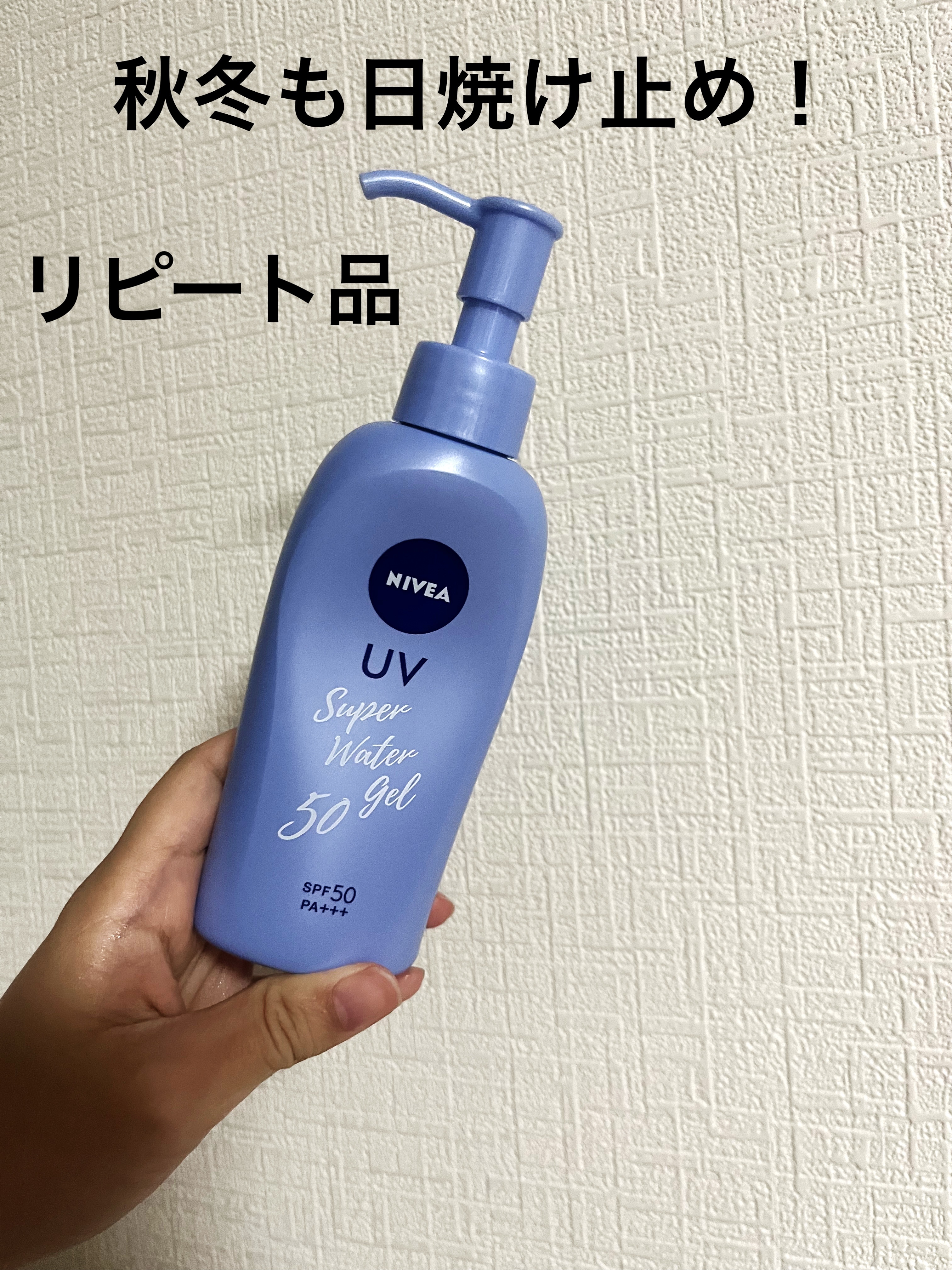ニベアUVウォータージェル<顔・からだ用>ポンプ 140g ¥1,303〜SPF50/PA+++軽いつけ心地でベタつきにくいウォータリーベース75%のスキンケアUV化粧水と乳液の間くらいのテクスチャー鉱物油フリー・合成香料フリー・合成着色剤フ...
