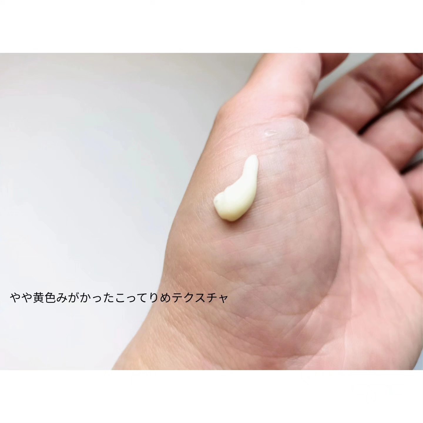 美容液と乳液の2つの機能搭載! シンプルでありながら充実したケアが期待できそう。 とろりとした濃厚なテクスチャー。 少し黄色がかったクリーム色ですよ。 しっとりとした使い心地なので冬の乾燥対策にもおすすめ。