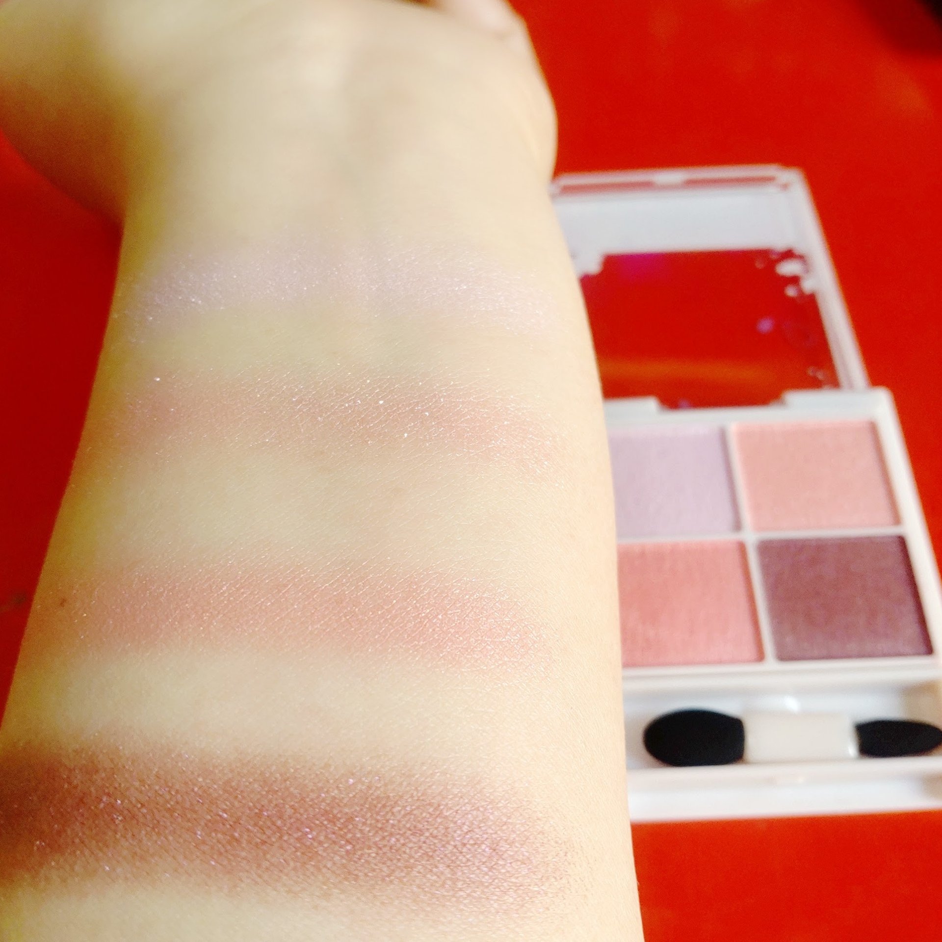 プチプラのクオリティじゃないっ!! 発売前からチェックしていたけれど、ここまで可愛いとは…😆 絶妙カラーで目もとのくすみを飛ばして*明るい印象に🩷 横割りグラデーションでメイクし、立体感をより出したかったので最後に1番左のカラーを上まぶたの真ん中と涙袋にのせています🙆 肌馴染みも良くて粉飛びも感じにくかったです💕 ブラウンの方も店頭に出てたら買おうかな💓