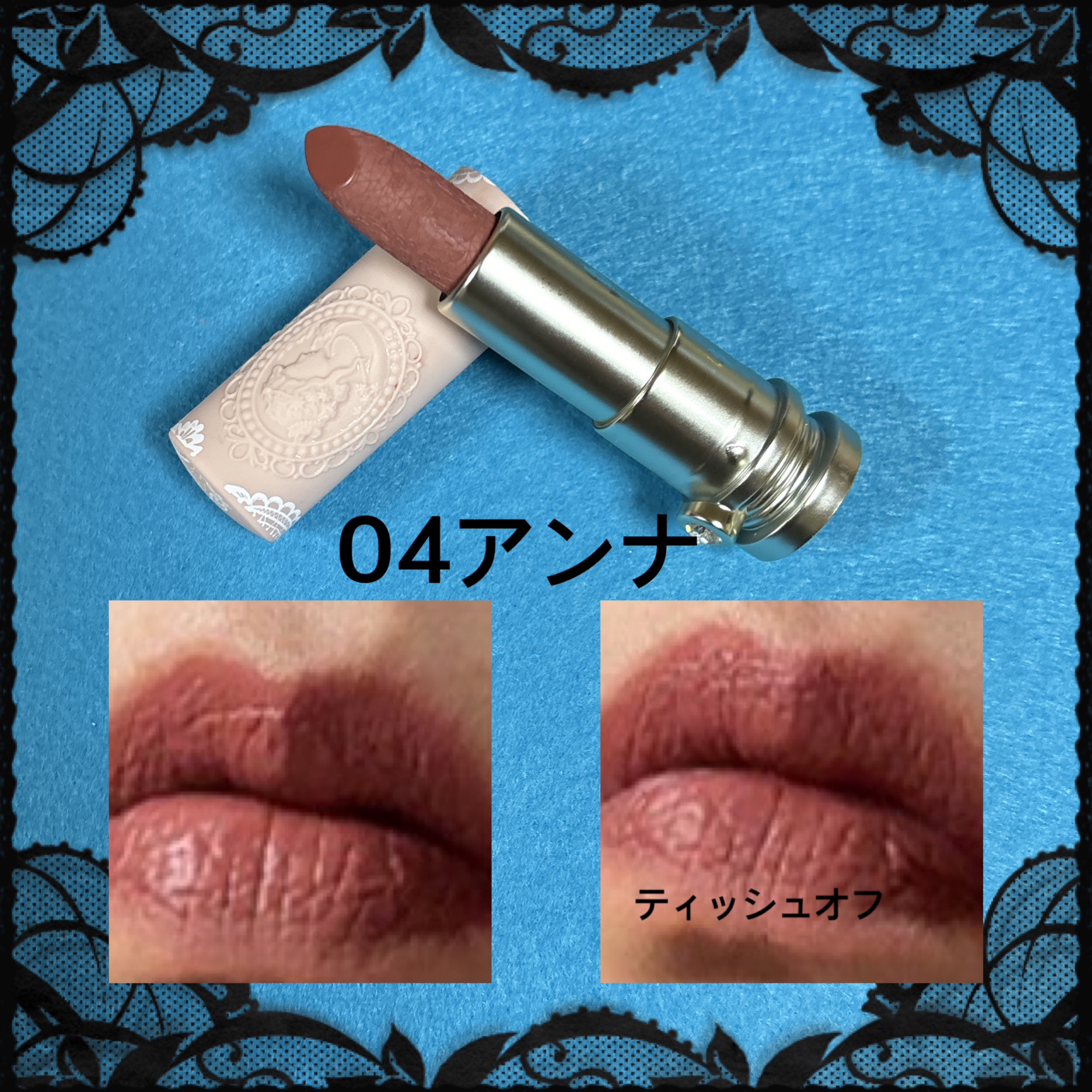 リップ自体に彫刻がされているので使用するたび テンションが上がります🫣 04アンナは、深めのピンク色なので大人っぽく とても使いやすいです😌 色味は6種類ありマットタイプとツヤタイプが あるので自分好みのものが見つかると思います✨