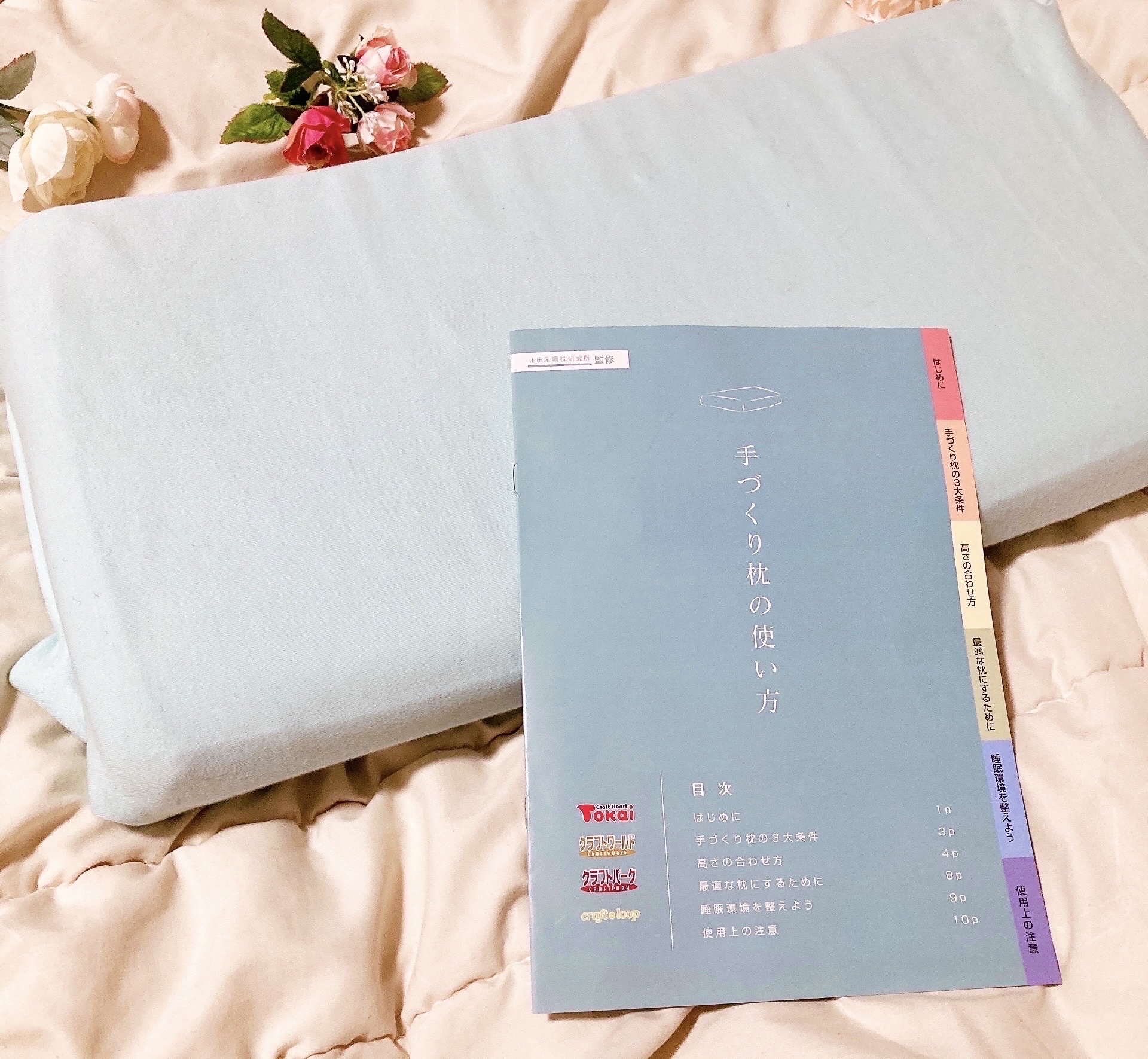 良い睡眠姿勢に必要な「自分の体格に合った高さ」、寝返りがしやすい「平らな形状」、高さと形状が変わらないための「硬さ」にこだわり、7枚のシートを使う枕♥ 自分の体格・寝具環境に合った枕に9㎝~4㎝まで5㎜単位で調節することができるマクラだそう! 柔らかい面を上にして使用します。しっかり安定感はあるのに、上部は柔らかい触り心地😆フィット感があり、高さも丁度よくストレスなく使えています♡