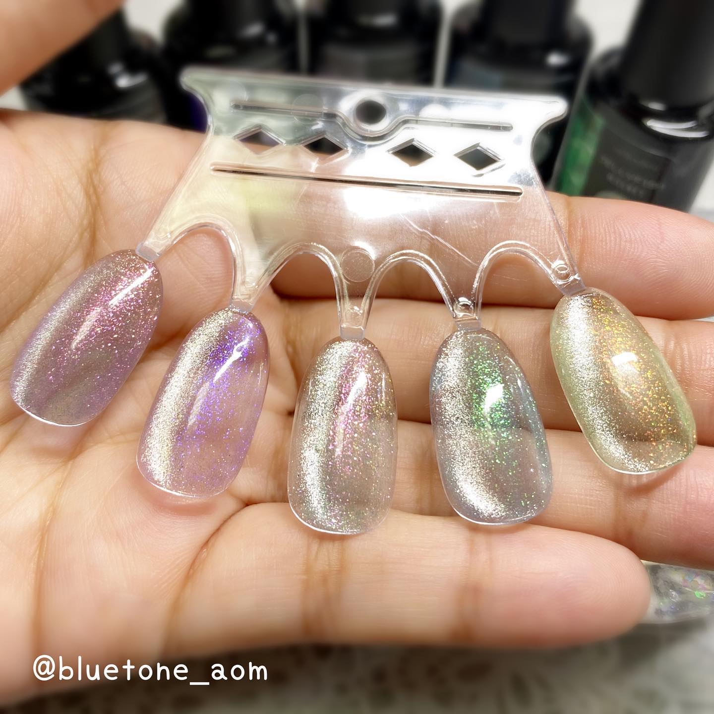 ラメがしっかりしてるし クリアカラーが入ってるから オーロラパウダー無しでも 充分キラキラしました! 反射強めのフィルムなので 実物はもっと うるうるとキラキラが強いです! ビー玉みたい🥺 ネイルシール長持ちさせたいけど ちょっと飽きてきたな〜って時とかに 全然違った印象になるのでオススメです! Seriaのベースジェル 本当にうるうるネイルしやすいので オススメしたい🙆♀️