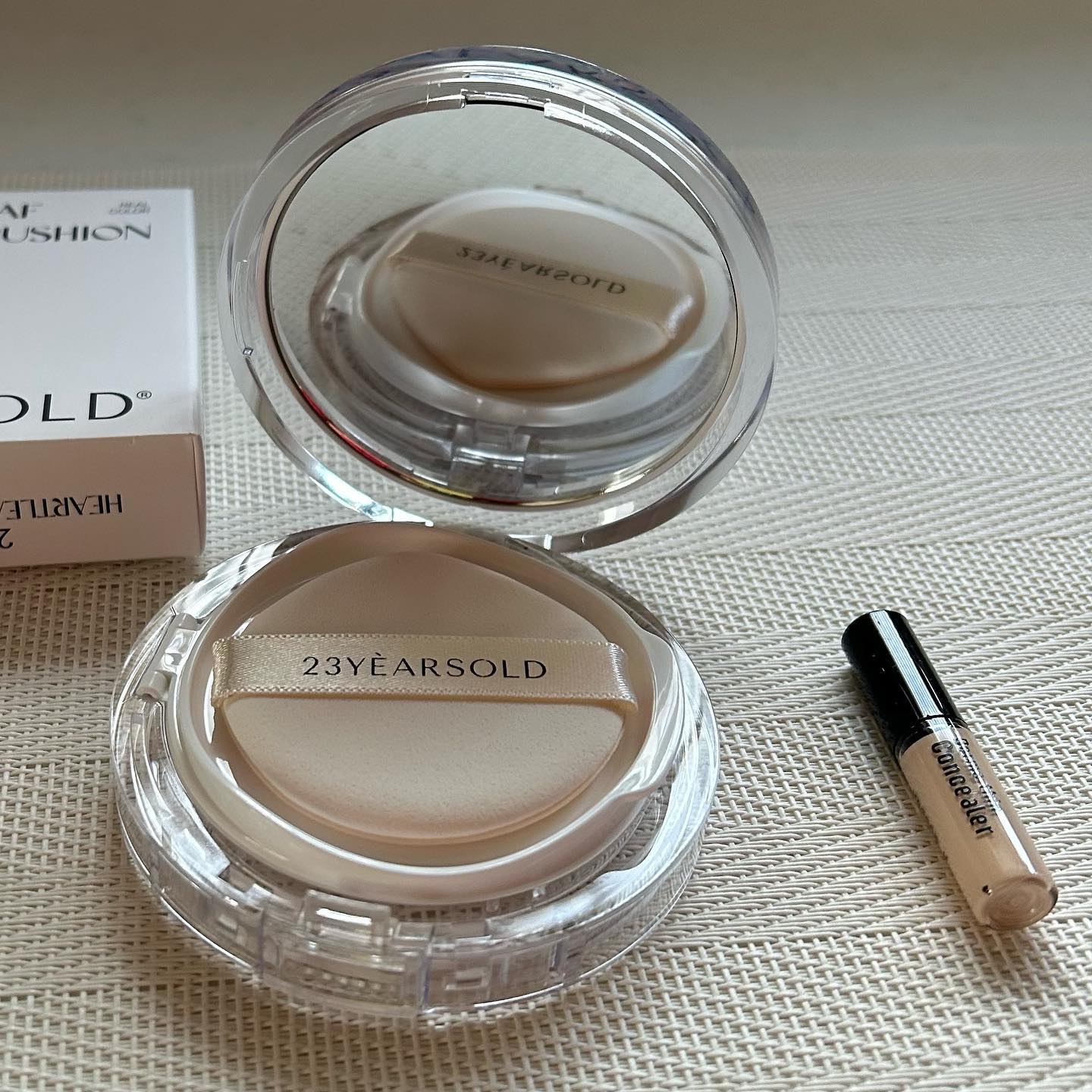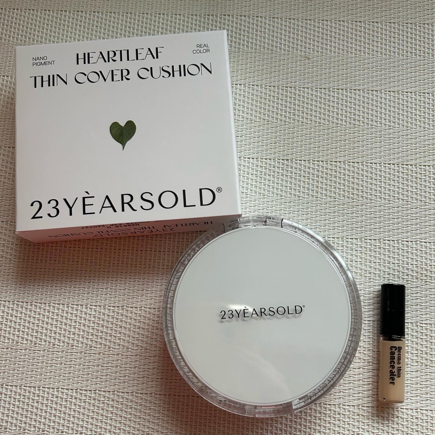 #PR#23YEARSOLD@23yearsold_jpハートリーフシンカバークッションドクダミエキス約10000PPM配合軽いつけ心地でセミマット仕上がりが綺麗なクッション🤍柔らかなパフで密着力◎パケも可愛いしミニコンシーラー付きなのも嬉し...