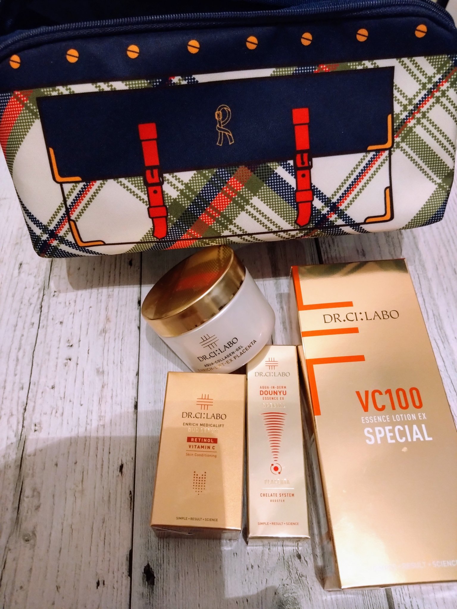 - 【内容】百貨店発売日:2023年10月1日(日)/公式オンラインサイト・電話発売日:10月19日(木) ・「VC100エッセンスローションEX スペシャル」 150mL ドクターシーラボ人気のビタミンC化粧水「VC100」の最高峰。次世代プラセンタ配合で、毛穴・キメ・くすみをケアするだけでなく、弾力のあるハリ肌を叶えてくれる。 ・「アクアコラーゲンゲル エンリッチリフトEXプラセンタ」 50g 次世代プラセンタ配合で、年齢とともに現れる乾燥やハリ不足などの肌悩みにアプローチする、リッチなテクスチャーのゲル。塗布した後は、うるおいに満ちた吸い付くような肌を実感できるはず。 ・「エンリッチ メディカリフト デュオセラム」 7mL 純粋レチノール配合のオイル層と、高浸透ビタミンCのエッセンス層から成る2層式タイプの夜用美容液。使用前に2秒間シェイクして肌にのせると、ハリ不足や乾燥、毛穴などの全てのエイジングサインにアプローチ。弾むようなハリ感と、ツヤのある透明感あふれる肌へ導いてくれる。 ・「アクアインダーム導入エッセンスEXスペシャル」15mL ドクターシーラボ独自のリポソーム設計の高浸透処方の導入美容液。肌をやわらかく整え、次に使うVC100ローションやプラセンタゲルの肌なじみをサポート。うるおいを肌奥まで届けてくれる。