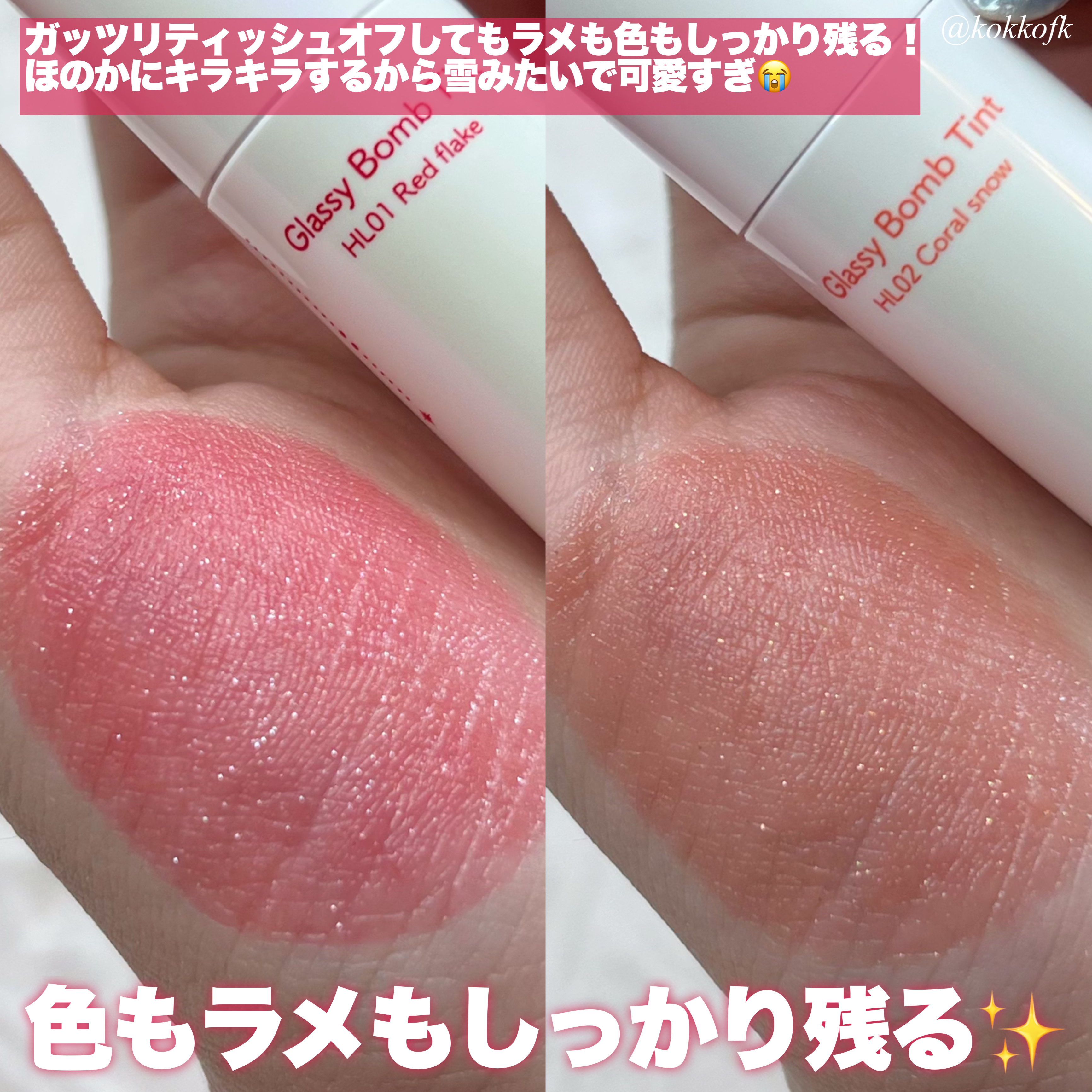 ホリデー限定リップ! &nd by rom&nd アンドバイロムアンドグラッシーボムティント ¥780 今年はシャルドネの香り付きで登場! キツ過ぎずほのかに香るので使いやすいです! このカラーはブルベさんにおすすめなピンク強め! でもどんなメイクにも合わせやすくておすすめです☝🏻🎀