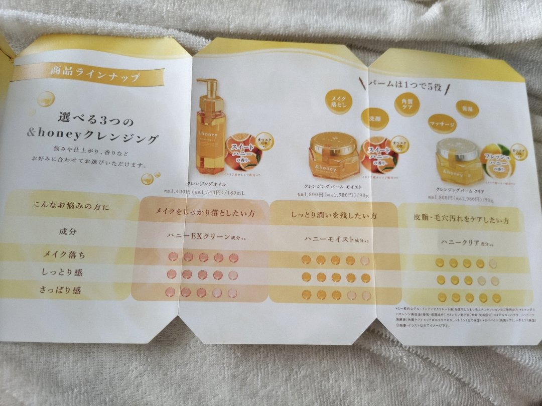 - 『&honey』から初のスキンケアシリーズ、クレンジングが誕生。 肌にうるおいを与えながら落とすハチミツ美容で、製品の90%以上をハチミツやアルガンオイル、オーガニックヒアルロン酸などの保湿&整肌成分で構成。 【クレンジングバーム モイスト】 ・ハニーモイスト成分*を配合 潤いを残しながらメイクをOFF.しっとり肌へ導きます。 ・1つで5役 メイク落とし・角質ケア・洗顔・マッサージ・保湿の5役 ・W洗顔不要。まつエクOK。パッチテスト済み。 ・無添加・フリー処方 合成着色料・パラベン・アルコール・動物実験フリー ・スイートハニーの香り *プロポリスエキス、ハチミツ(全て保湿)