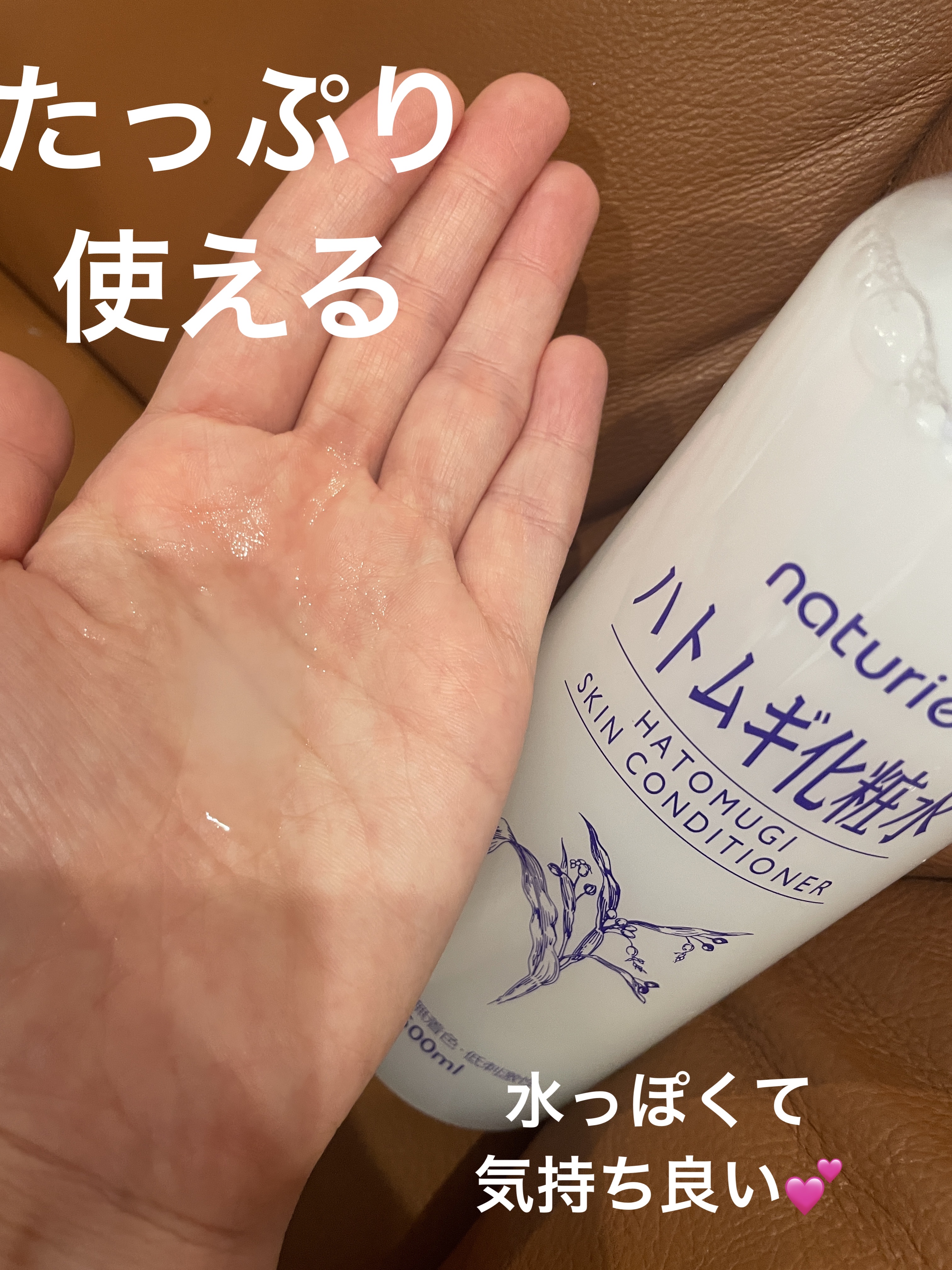天然植物由来の保湿成分"ハトムギエキス"を従来品より20%増量 またエキスの抽出方法を変更したことにより、アミノ酸の濃度は4倍、今までよりも保湿力アップ シャバシャバでみずみずしいテクスチャー、肌にグングン浸透してくれます👏 私は重ね付けしてたっぷり保湿したり、コットンにヒタヒタに染み込ませて贅沢にコットンパックとして使ったりしています💡 プルプルで柔らかく軽いテクスチャーのジェルです💡 みずみずしくとても伸びが良く、たっぷり塗っても全くベタつかないのがお気に入り⭐️