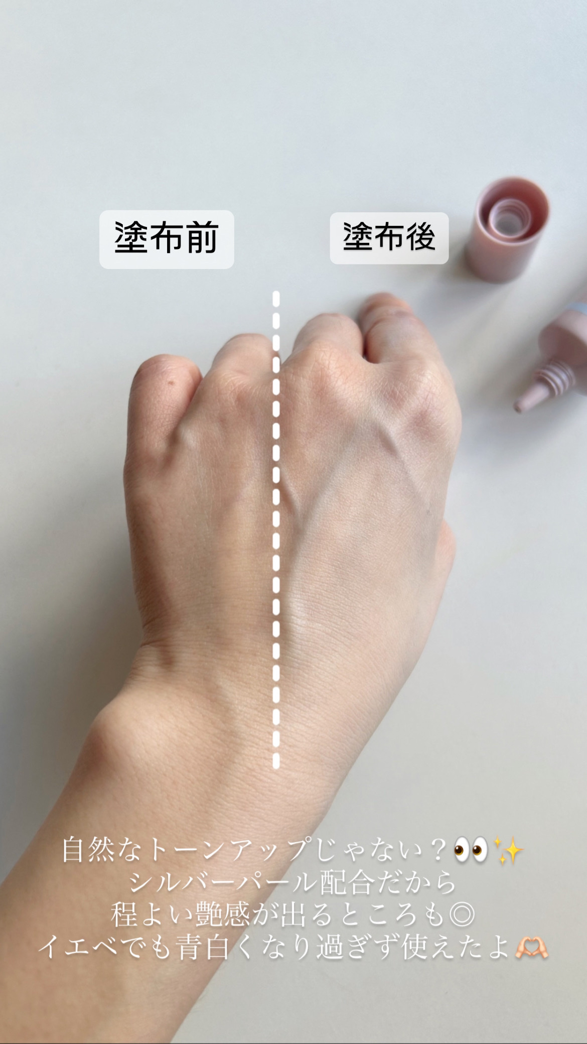 - しっかりカバー&ふんわり白肌メイクが叶うトーンアップベースから、ツヤ感UPの新タイプが登場! ○シルバーパールを加えツヤ肌を演出 ○SPF43 PA+++、紫外線吸収剤不使用 ○4種のボタニカルエキスを配合(すべて保湿成分) セイヨウスギタ葉/茎エキス、クレマティス葉エキス、セイヨウナツユキソウ花エキス、スギナエキス