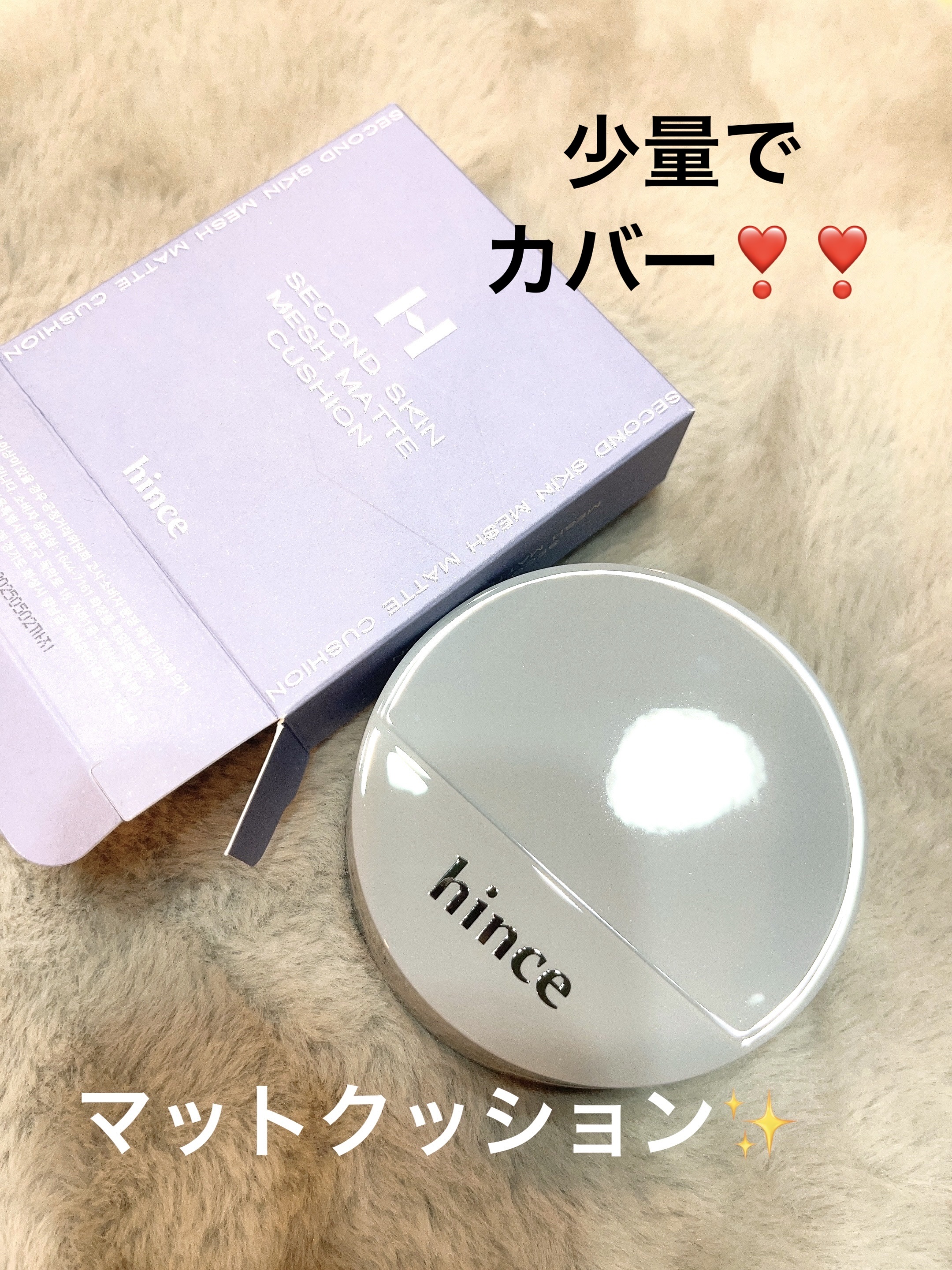 hinceセカンドスキンメッシュマットクッション 23マットに仕上がり軽いファンデ買ってみました❗マットなんだけどサラっと軽くて付け心地が良かったです‼素肌を綺麗に見せてくれて、薄いシミは隠れちゃうからなかなか優秀な印象です✨高カバーではない...
