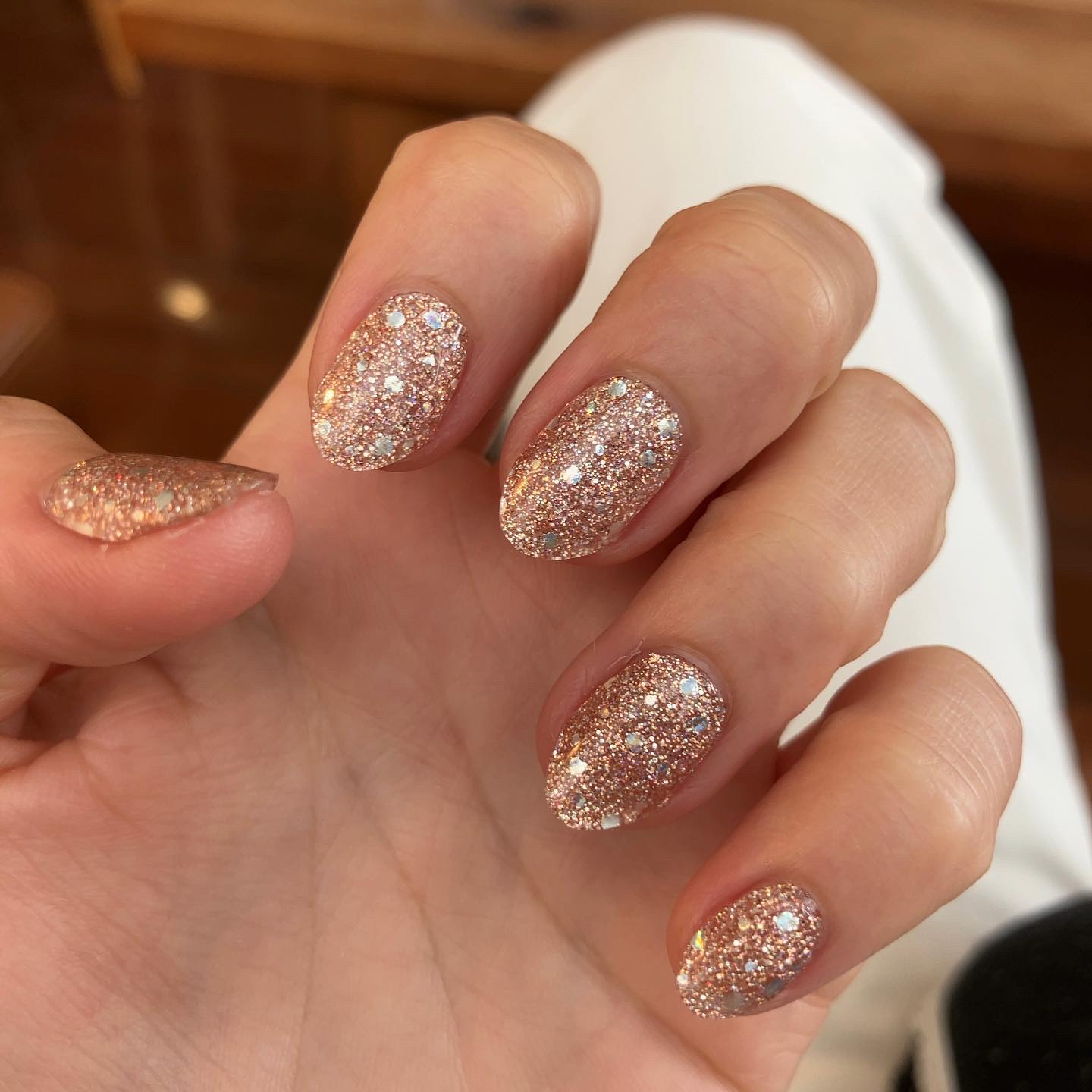 オホーラ購入品NAfterpartyND-044-Gキラキラ可愛いのがお気に入り♡トップコートで仕上げています#オホーラ#購入品#セミキュアジェルネイル#ジェルネイル#セルフジェルネイル#ネイルシール#ohora#簡単ネイル#購入品紹介#グリ...