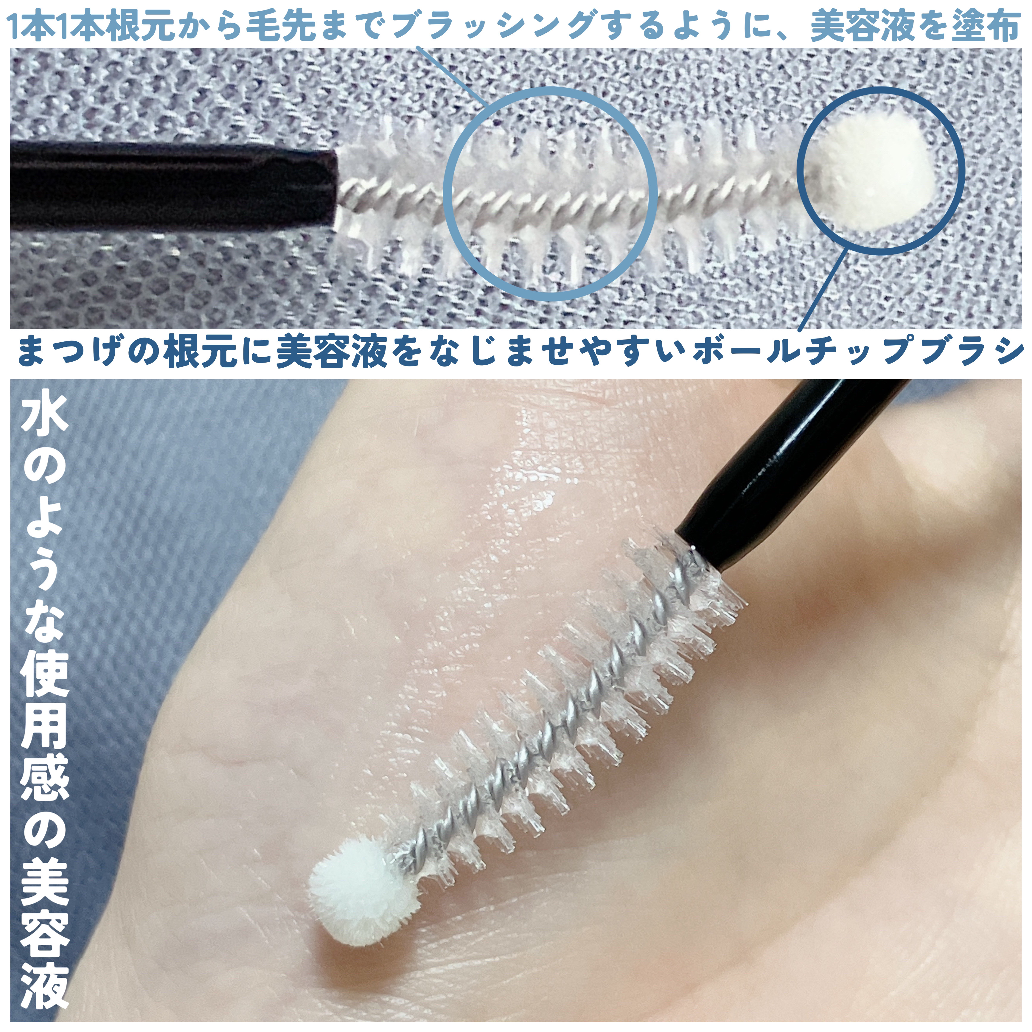 - まつエク、メイクアップなどでダメージを受けたまつ毛に簡単補修ケア。オイルフリーで水のような使用感。濃縮セラムがまつ毛に潤いとハリを与えて健康的なまつ毛に!