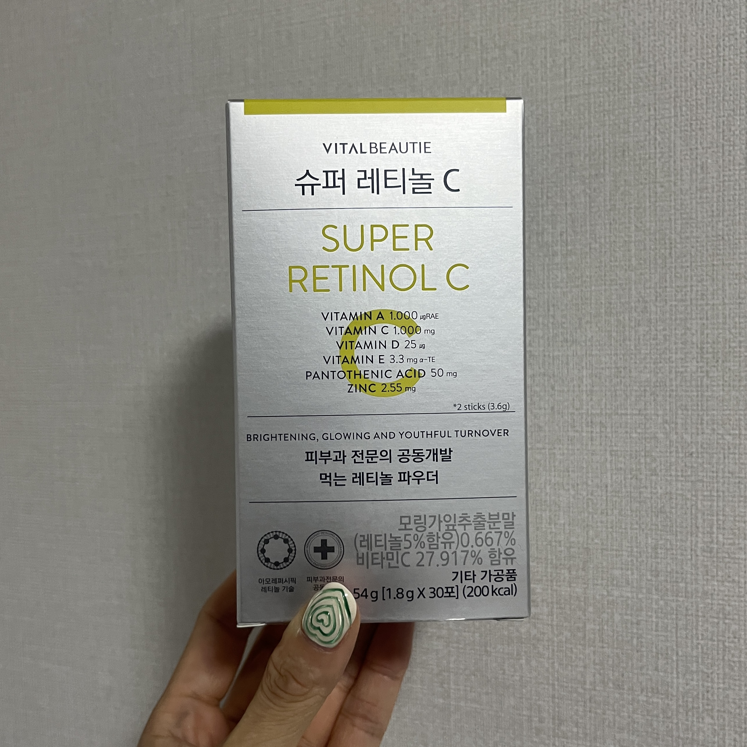 - 食べるタイプのレチノール 1) 専門家のフォーミュラ Flex! - 皮膚科専門医とアモーレパシフィックが共同開発 29年間蓄積したレチノール技術で完成! 食べるレチノールプロテクション技術を適用 (ビタミンA、1000ugRAE配合*) 2) 明るく輝く! - 豊富に含むビタミンC1,000mg含有* - パントテン酸1日栄養成分基準配合* - ビタミンE、ビタミンD、亜鉛 副成分 L-システインとヘスペリジンを配合 3) さわやかなシトラスの味 「ヴィーガンレチノール」 - ヴィーガン認証を取得した毎日摂取できる美味しいレチノール *上記の栄養成分の数値は、2包摂を基準に作成された含量です *お召し上がり方! 1回1~2包を 直接摂取してください