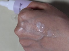 目もとをロールオンでなぞるように転がし、塗布。 ひんやりとロールが転がり、とぅるんと美容液が広がっていく。 こちらは回して適量を繰り出して使用。 スティック状になったバームは細くカッティングされてて、目元へ塗りやすい。 バームは白く固形となってて、肌に触れるとすっーととろけてなじむ使用感。 油分によるべたべた重い感じがなく、使いやすい。