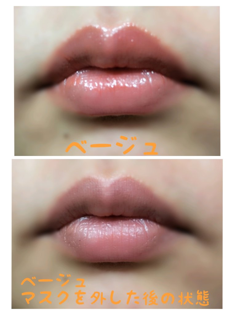 どちらも粘膜に近い色だから、落ちても汚く見えなくて好き。 ジェル膜処方のリップってティントリップよりも落としやすいのも好き。 意外と似てた。手に塗った時は結構違って見えたんだけどね。