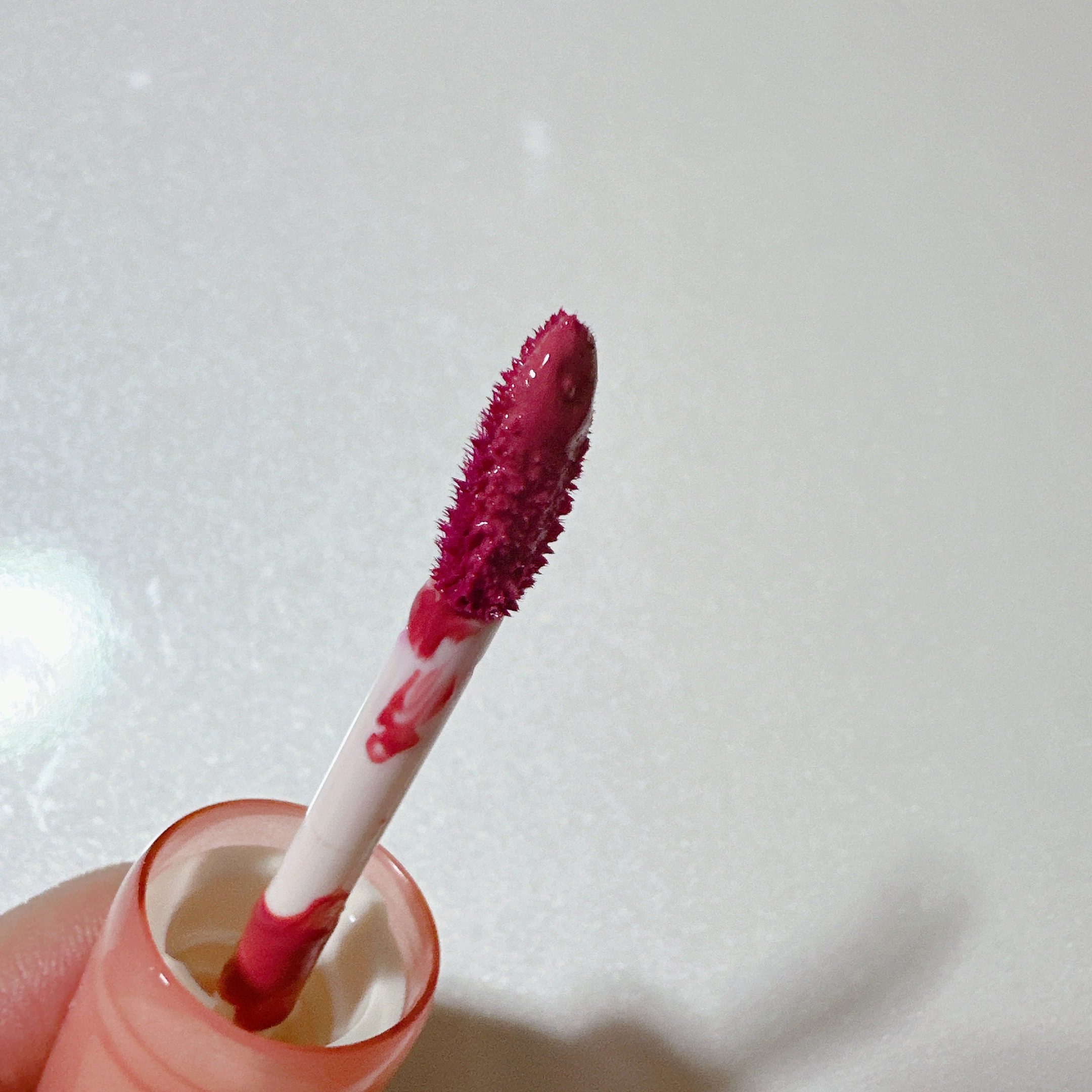 名前の通り、バラの赤色と、りんごの赤色が混ざったような絶妙な色味で、ブルベ夏とイエベ春の方におすすめのカラーだと思います! このシリーズはとにかく密着力が高くて、落ちにくいので、飲み物を飲んでも、食べ物を食べても色がはっきりと残っていることもあるので、大好きな商品です!
