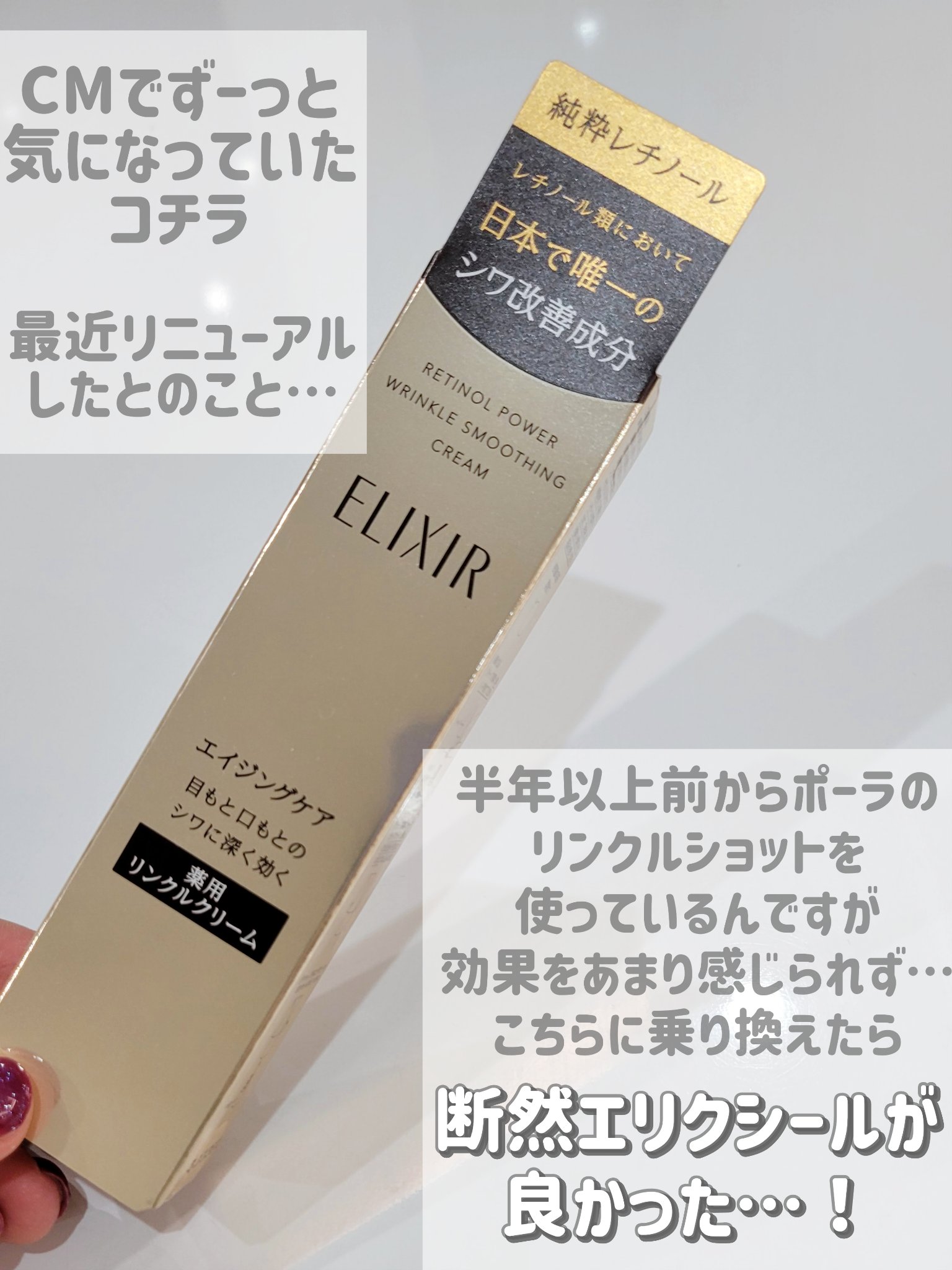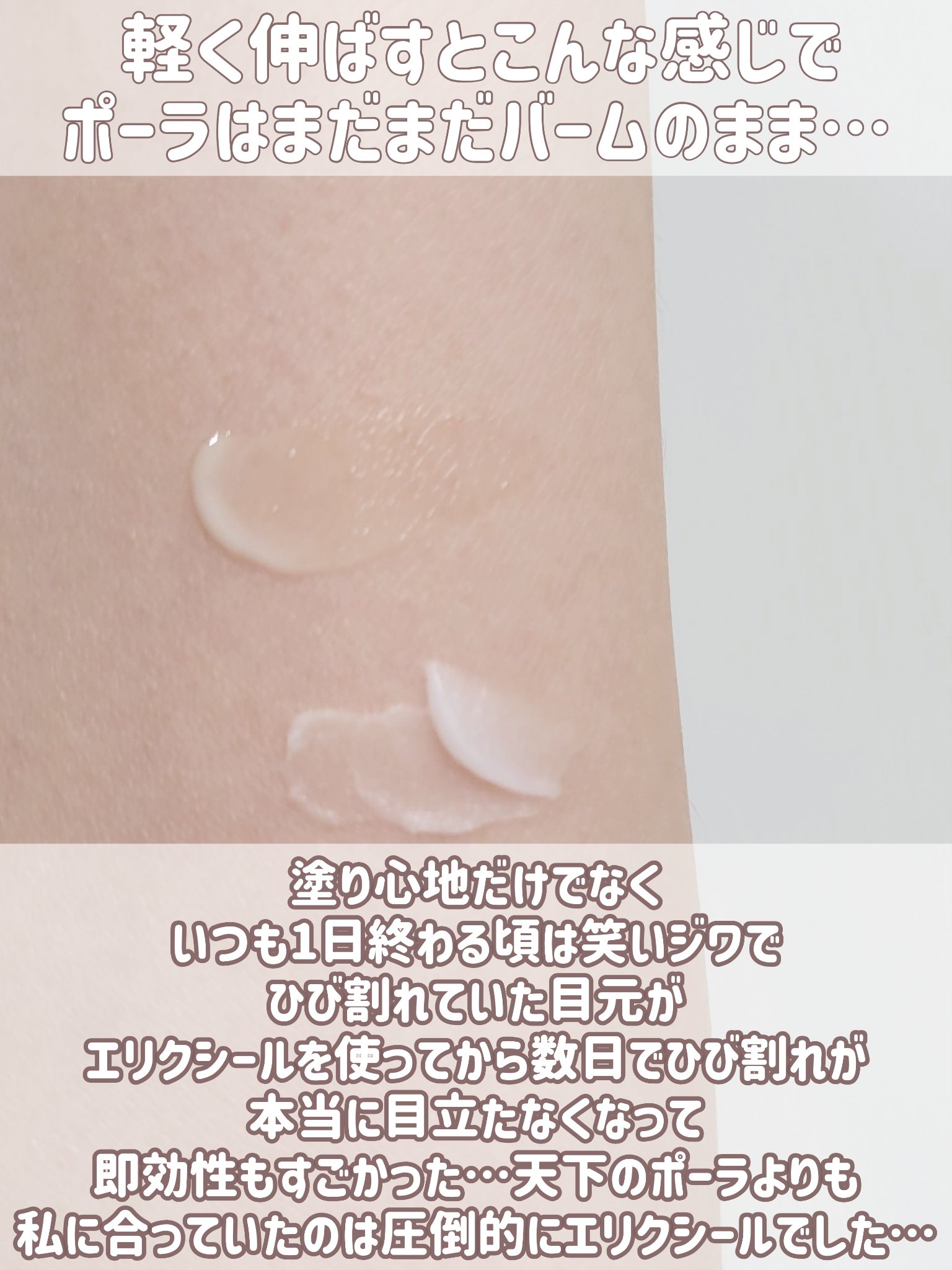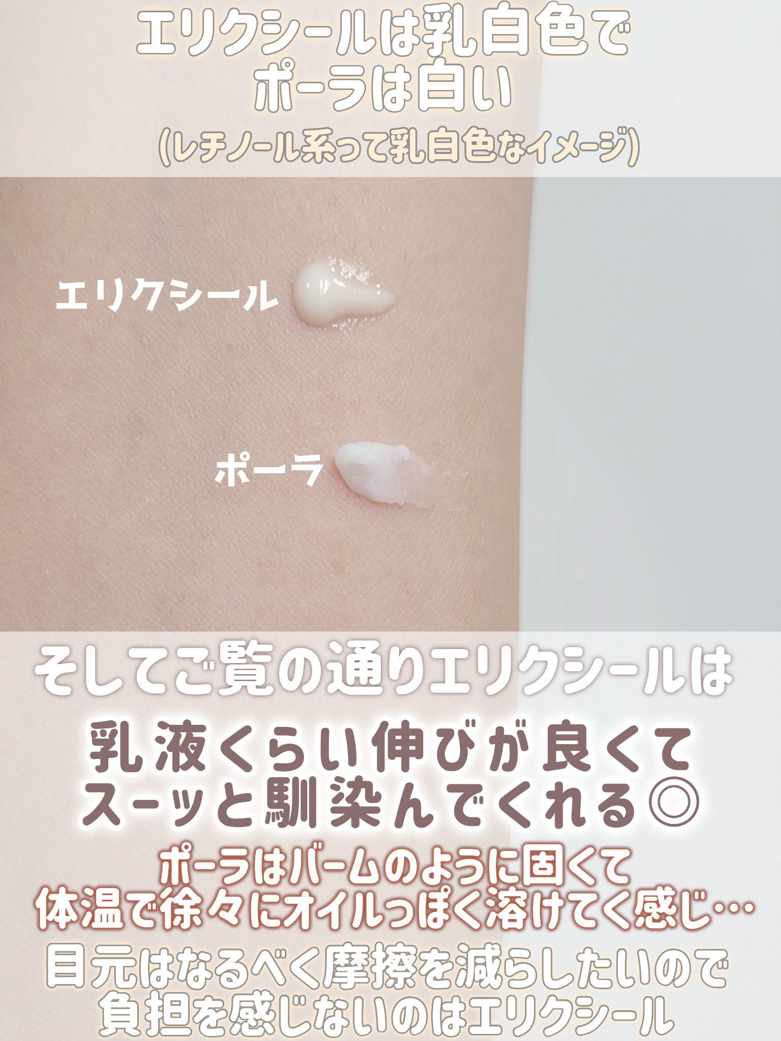エリクシールスゴいわね✨ 比較がメッチャ解りやすい👀✨ 勝手に目元ケアはリンクルショットのイメージ強かったけど、エリクシールなのか… おまみちゃんが推してると説得力ある💓