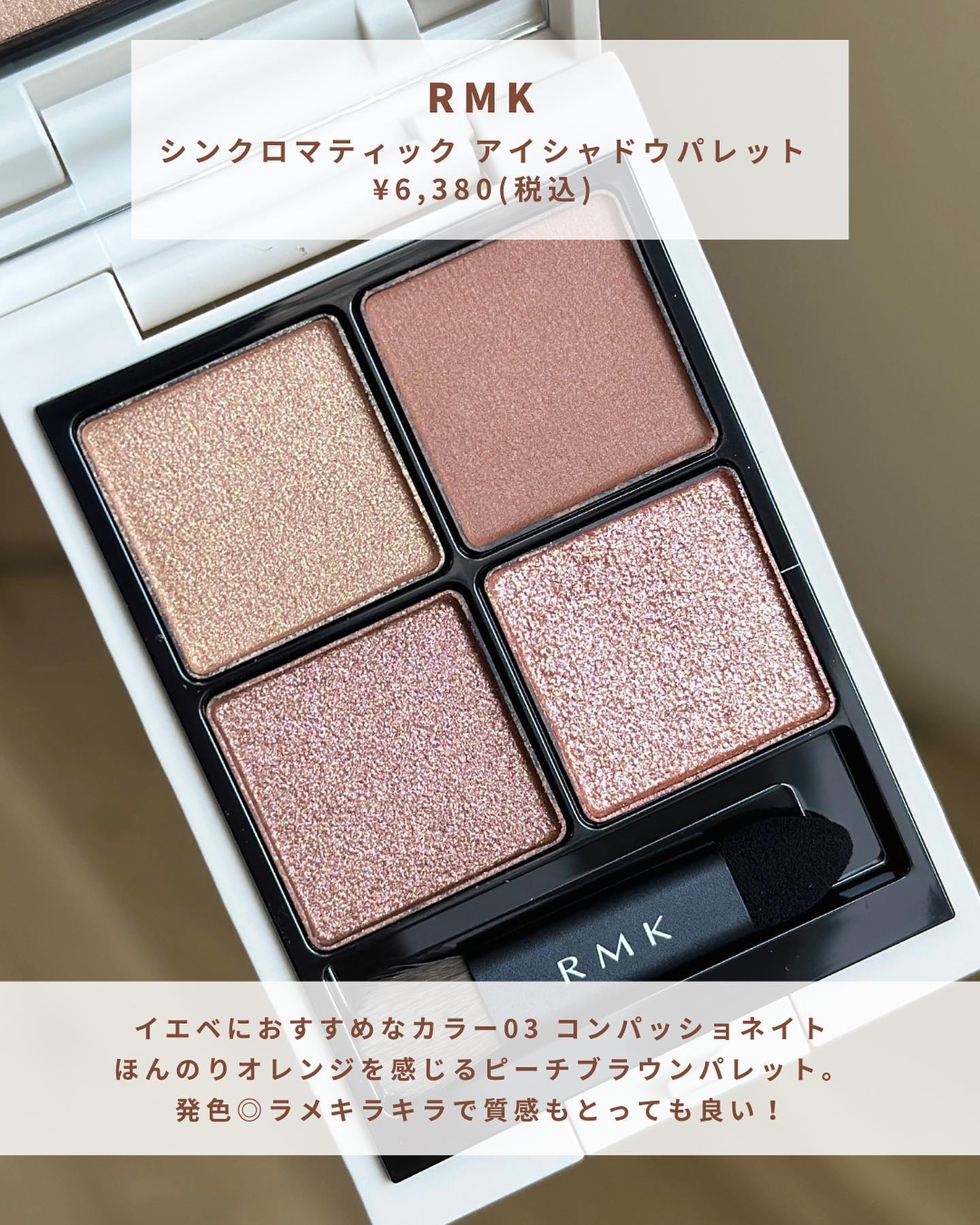 💗イエベにおすすめの大人っぽピンクシャドウ💕RMKシンクロマティックアイシャドウパレット05ディライトフル全体的に赤みのあるパレット塗り方によって、さまざまなメイクが楽しめる💄Bright-Spring、Vivid-Springにおすすめ🌸B...