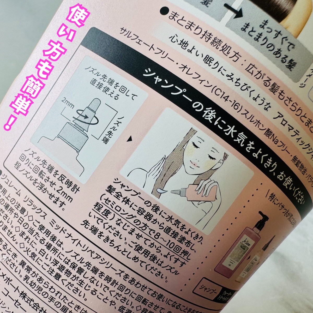 商品詳細情報Je l'aime ジュレーム リラックス ミッドナイトリペア ウォータートリートメント<洗い流すヘアトリートメント>