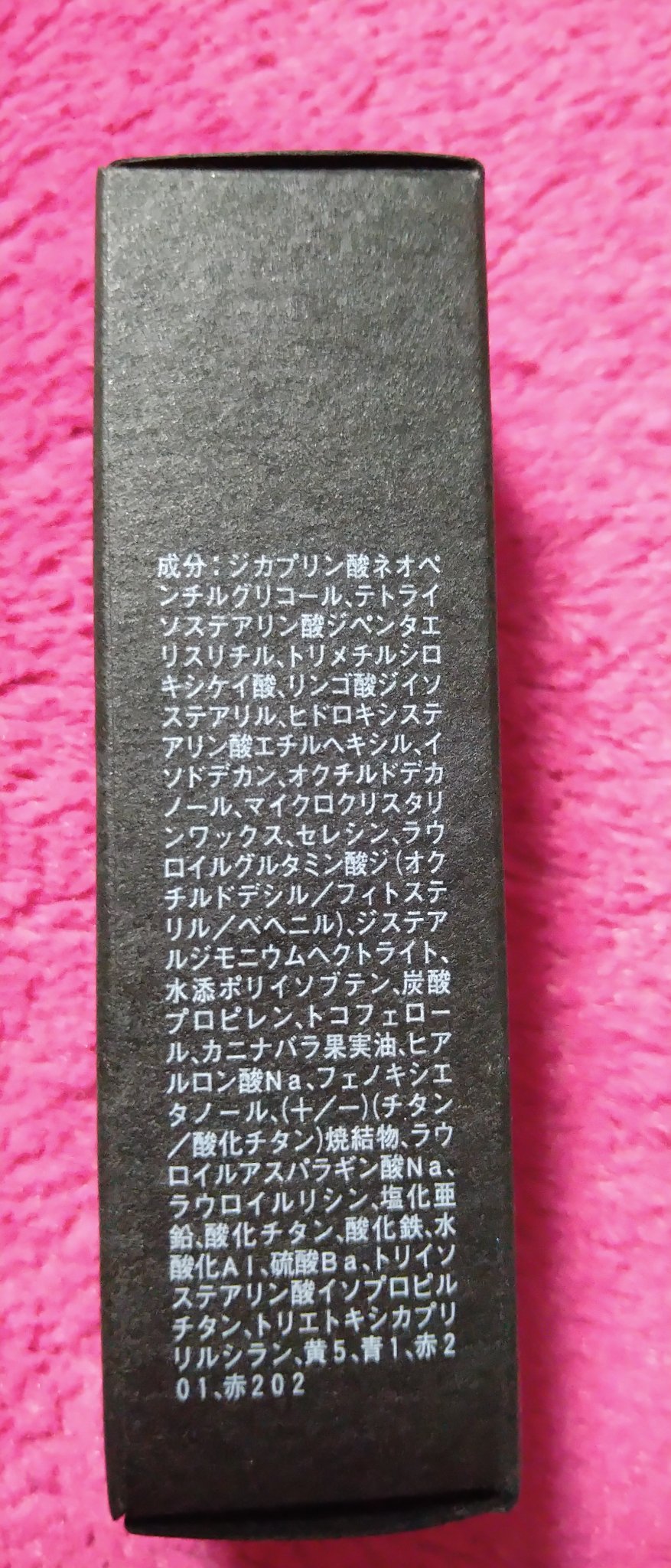 - <01 シアー セピア> テトライソステアリン酸ジペンタエリスリチル、ジカプリン酸ネオペンチルグリコール、トリメチルシロキシケイ酸、リンゴ酸ジイソステアリル、ヒドロキシステアリン酸エチルヘキシル、イソドデカン、オクチルドデカノール、マイクロクリスタリンワックス、セレシン、ラウロイルグルタミン酸ジ(オクチルドデシル/フィトステリル/ベヘニル)、ジステアルジモニウムヘクトライト、水添ポリイソブテン、炭酸プロピレン、トコフェロール、カニナバラ果実油、ヒアルロン酸Na、フェノキシエタノール、(+/-)(チタン/酸化チタン)焼結物、マイカ、ラウロイルアスパラギン酸Na、ラウロイルリシン、塩化亜鉛、酸化チタン、酸化鉄、水酸化Al、硫酸Ba、トリイソステアリン酸イソプロピルチタン、トリエトキシカプリリルシラン、黄4、黄5、青1、赤201、赤202 <02 ウォーム バタースコッチ> テトライソステアリン酸ジペンタエリスリチル、ジカプリン酸ネオペンチルグリコール、トリメチルシロキシケイ酸、リンゴ酸ジイソステアリル、ヒドロキシステアリン酸エチルヘキシル、イソドデカン、オクチルドデカノール、マイクロクリスタリンワックス、セレシン、ラウロイルグルタミン酸ジ(オクチルドデシル/フィトステリル/ベヘニル)、ジステアルジモニウムヘクトライト、水添ポリイソブテン、炭酸プロピレン、トコフェロール、カニナバラ果実油、ヒアルロン酸Na、フェノキシエタノール、(+/-)(チタン/酸化チタン)焼結物、マイカ、ラウロイルアスパラギン酸Na、ラウロイルリシン、塩化亜鉛、酸化チタン、酸化鉄、水酸化Al、硫酸Ba、トリイソステアリン酸イソプロピルチタン、トリエトキシカプリリルシラン、黄4、黄5、青1、赤201、赤202 <03 ボルドー ウェーブ> テトライソステアリン酸ジペンタエリスリチル、ジカプリン酸ネオペンチルグリコール、トリメチルシロキシケイ酸、リンゴ酸ジイソステアリル、ヒドロキシステアリン酸エチルヘキシル、イソドデカン、オクチルドデカノール、マイクロクリスタリンワックス、セレシン、ラウロイルグルタミン酸ジ(オクチルドデシル/フィトステリル/ベヘニル)、ジステアルジモニウムヘクトライト、水添ポリイソブテン、炭酸プロピレン、トコフェロール、カニナバラ果実油、ヒアルロン酸Na、フェノキシエタノール、(+/-)(チタン/酸化チタン)焼結物、マイカ、ラウロイルアスパラギン酸Na、ラウロイルリシン、塩化亜鉛、酸化チタン、酸化鉄、水酸化Al、硫酸Ba、トリイソステアリン酸イソプロピルチタン、トリエトキシカプリリルシラン、黄4、黄5、青1、赤201、赤202 <04 スパイスド サングリア> テトライソステアリン酸ジペンタエリスリチル、ジカプリン酸ネオペンチルグリコール、トリメチルシロキシケイ酸、リンゴ酸ジイソステアリル、ヒドロキシステアリン酸エチルヘキシル、イソドデカン、オクチルドデカノール、マイクロクリスタリンワックス、セレシン、ラウロイルグルタミン酸ジ(オクチルドデシル/フィトステリル/ベヘニル)、ジステアルジモニウムヘクトライト、水添ポリイソブテン、炭酸プロピレン、トコフェロール、カニナバラ果実油、ヒアルロン酸Na、フェノキシエタノール、(+/-)(チタン/酸化チタン)焼結物、マイカ、ラウロイルアスパラギン酸Na、ラウロイルリシン、塩化亜鉛、酸化チタン、酸化鉄、水酸化Al、硫酸Ba、トリイソステアリン酸イソプロピルチタン、トリエトキシカプリリルシラン、黄4、黄5、青1、赤201、赤202 <05 サキュレント ストロベリー> テトライソステアリン酸ジペンタエリスリチル、ジカプリン酸ネオペンチルグリコール、トリメチルシロキシケイ酸、リンゴ酸ジイソステアリル、ヒドロキシステアリン酸エチルヘキシル、イソドデカン、オクチルドデカノール、マイクロクリスタリンワックス、セレシン、ラウロイルグルタミン酸ジ(オクチルドデシル/フィトステリル/ベヘニル)、ジステアルジモニウムヘクトライト、水添ポリイソブテン、炭酸プロピレン、トコフェロール、カニナバラ果実油、ヒアルロン酸Na、フェノキシエタノール、(+/-)(チタン/酸化チタン)焼結物、マイカ、ラウロイルアスパラギン酸Na、ラウロイルリシン、塩化亜鉛、酸化チタン、酸化鉄、水酸化Al、硫酸Ba、トリイソステアリン酸イソプロピルチタン、トリエトキシカプリリルシラン、黄4、黄5、青1、赤201、赤202 <06 アラモアナ モーブ> テトライソステアリン酸ジペンタエリスリチル、ジカプリン酸ネオペンチルグリコール、トリメチルシロキシケイ酸、リンゴ酸ジイソステアリル、ヒドロキシステアリン酸エチルヘキシル、イソドデカン、オクチルドデカノール、マイクロクリスタリンワックス、セレシン、ラウロイルグルタミン酸ジ(オクチルドデシル/フィトステリル/ベヘニル)、ジステアルジモニウムヘクトライト、水添ポリイソブテン、炭酸プロピレン、トコフェロール、カニナバラ果実油、ヒアルロン酸Na、フェノキシエタノール、(+/-)(チタン/酸化チ