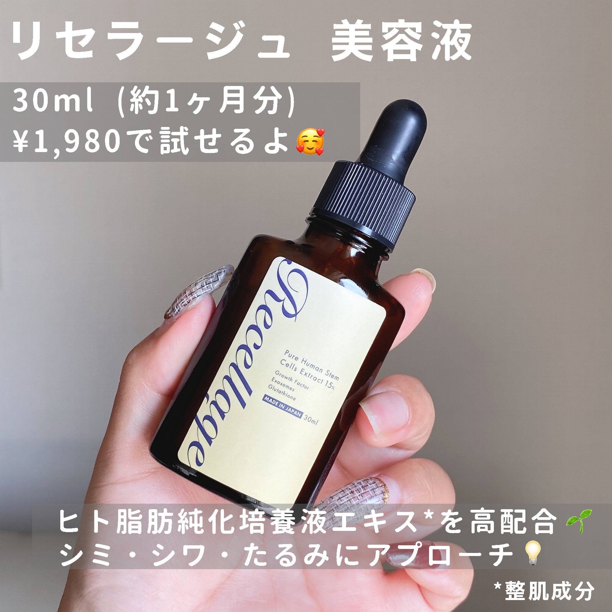 思わず感動した、ハイブリッド美容液。 Recellage リセラージュ 美容液 ♡ これ1つでなんと7役の美容液なの! ドラッグストア勤務の私でもなかなか7役の美容液は見かけない…! ヒト幹細胞培養液やエクソーム、グルタチオンが入っていて超濃厚。