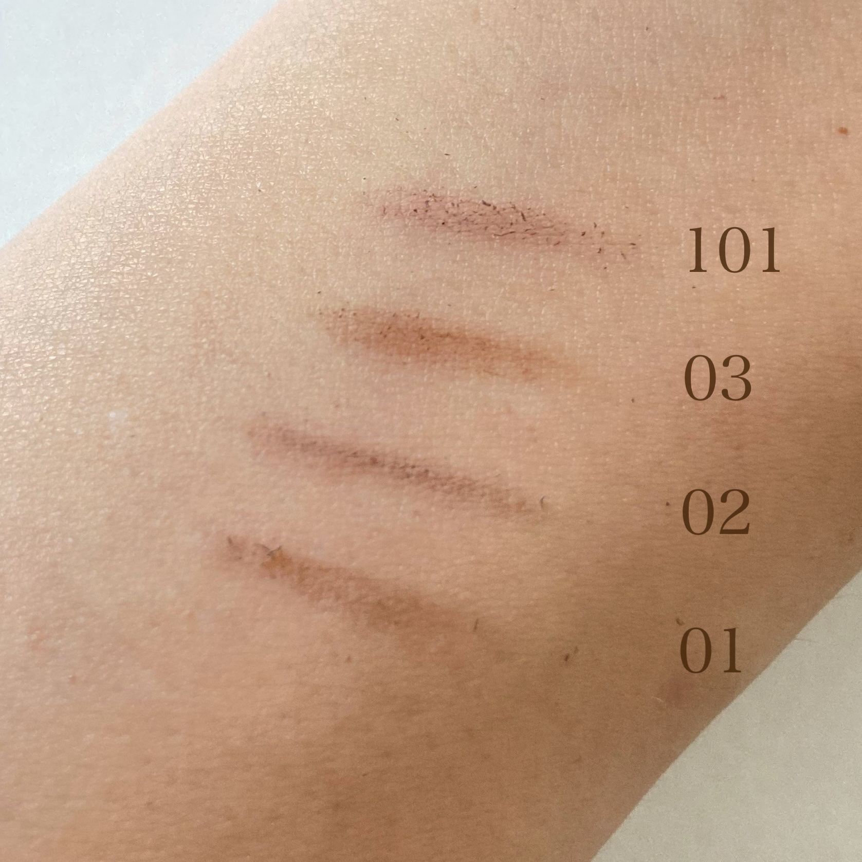 - <01 ダークブラウン> ステアリン酸、水添ヒマシ油、モクロウ、ダイマージリノール酸(フィトステリル/イソステアリル/セチル/ステアリル/べヘニル)、トリ(カプリル酸/カプリン酸)グリセリル、セスキオレイン酸ソルビタン、水酸化Al、ジメチコン、トコフェロール、スクワラン、ホホバ種子油、(+/-)酸化鉄、酸化チタン、マイカ <02 グレージュ> ステアリン酸、水添ヒマシ油、モクロウ、ダイマージリノール酸(フィトステリル/イソステアリル/セチル/ステアリル/べヘニル)、トリ(カプリル酸/カプリン酸)グリセリル、セスキオレイン酸ソルビタン、水酸化Al、ジメチコン、トコフェロール、スクワラン、ホホバ種子油、(+/-)酸化鉄、酸化チタン、マイカ <03 ナチュラルブラウン> ステアリン酸、水添ヒマシ油、モクロウ、ダイマージリノール酸(フィトステリル/イソステアリル/セチル/ステアリル/べヘニル)、トリ(カプリル酸/カプリン酸)グリセリル、セスキオレイン酸ソルビタン、水酸化Al、ジメチコン、トコフェロール、スクワラン、ホホバ種子油、(+/-)酸化鉄、酸化チタン、マイカ <101 ピンクグレージュ> ステアリン酸、水添ヒマシ油、モクロウ、ダイマージリノール酸(フィトステリル/イソステアリル/セチル/ステアリル/べヘニル)、トリ(カプリル酸/カプリン酸)グリセリル、セスキオレイン酸ソルビタン、水酸化Al、ジメチコン、トコフェロール、スクワラン、ホホバ種子油、(+/-)酸化鉄、酸化チタン、マイカ