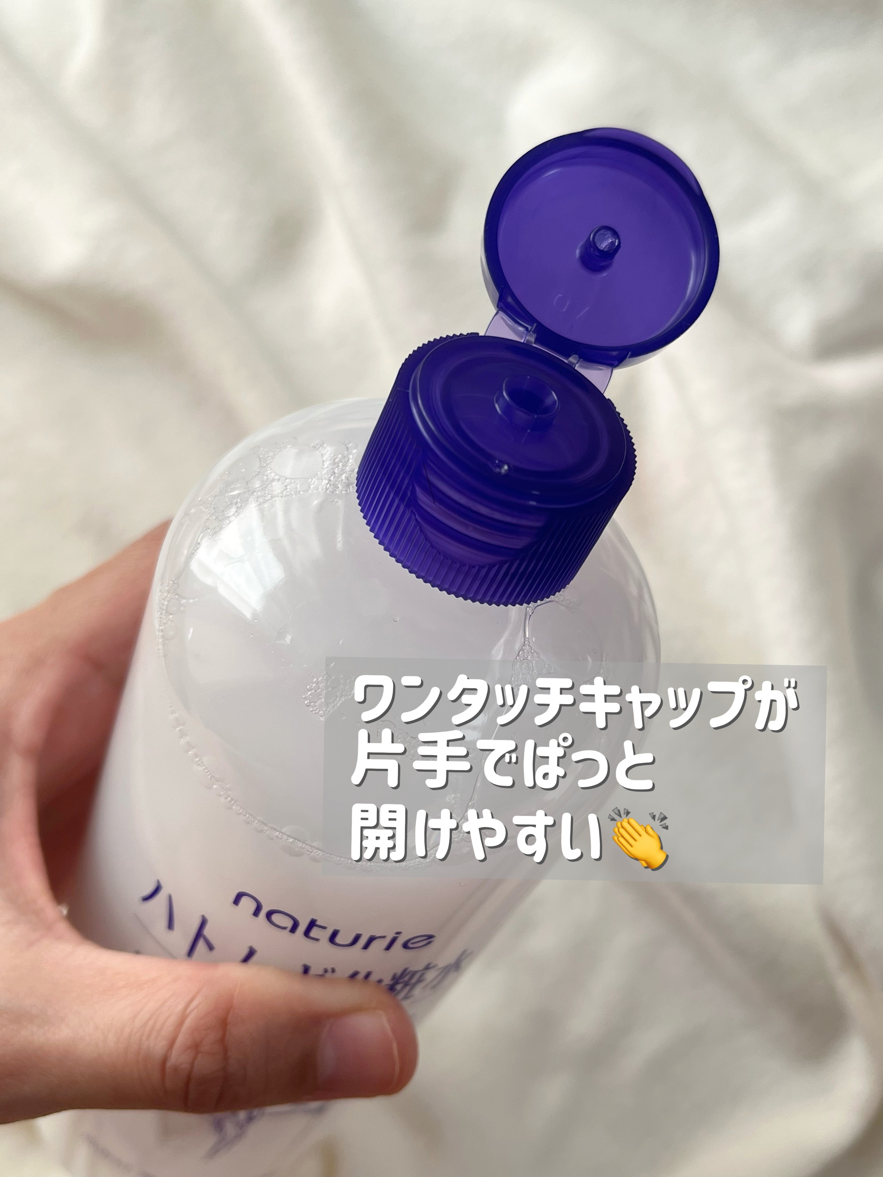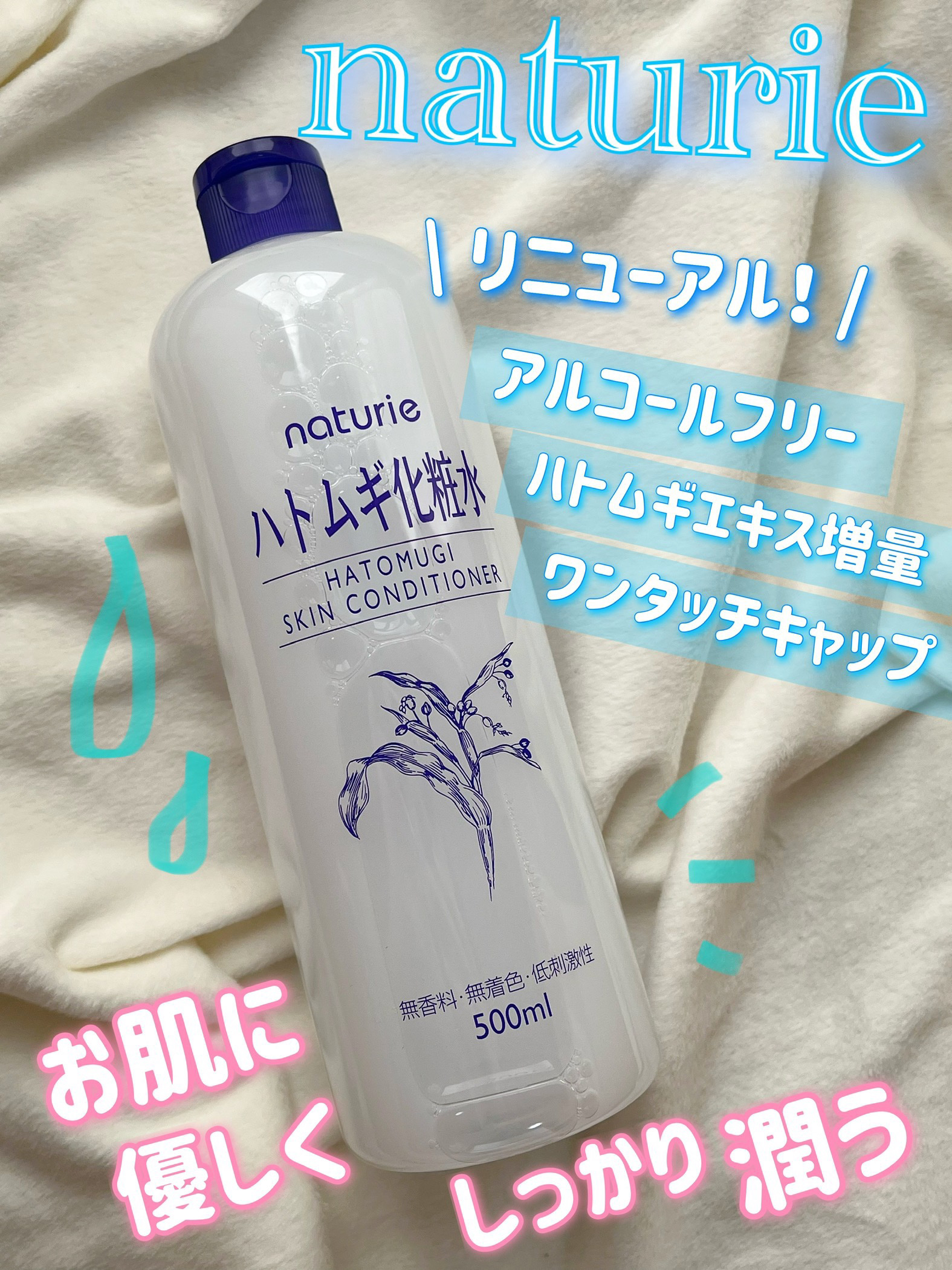 天然植物由来の保湿成分"ハトムギエキス"を従来品より20%増量 またエキスの抽出方法を変更したことにより、アミノ酸の濃度は4倍、今までよりも保湿力アップ シャバシャバでみずみずしいテクスチャー、肌にグングン浸透してくれます👏 私は重ね付けしてたっぷり保湿したり、コットンにヒタヒタに染み込ませて贅沢にコットンパックとして使ったりしています💡 プルプルで柔らかく軽いテクスチャーのジェルです💡 みずみずしくとても伸びが良く、たっぷり塗っても全くベタつかないのがお気に入り⭐️