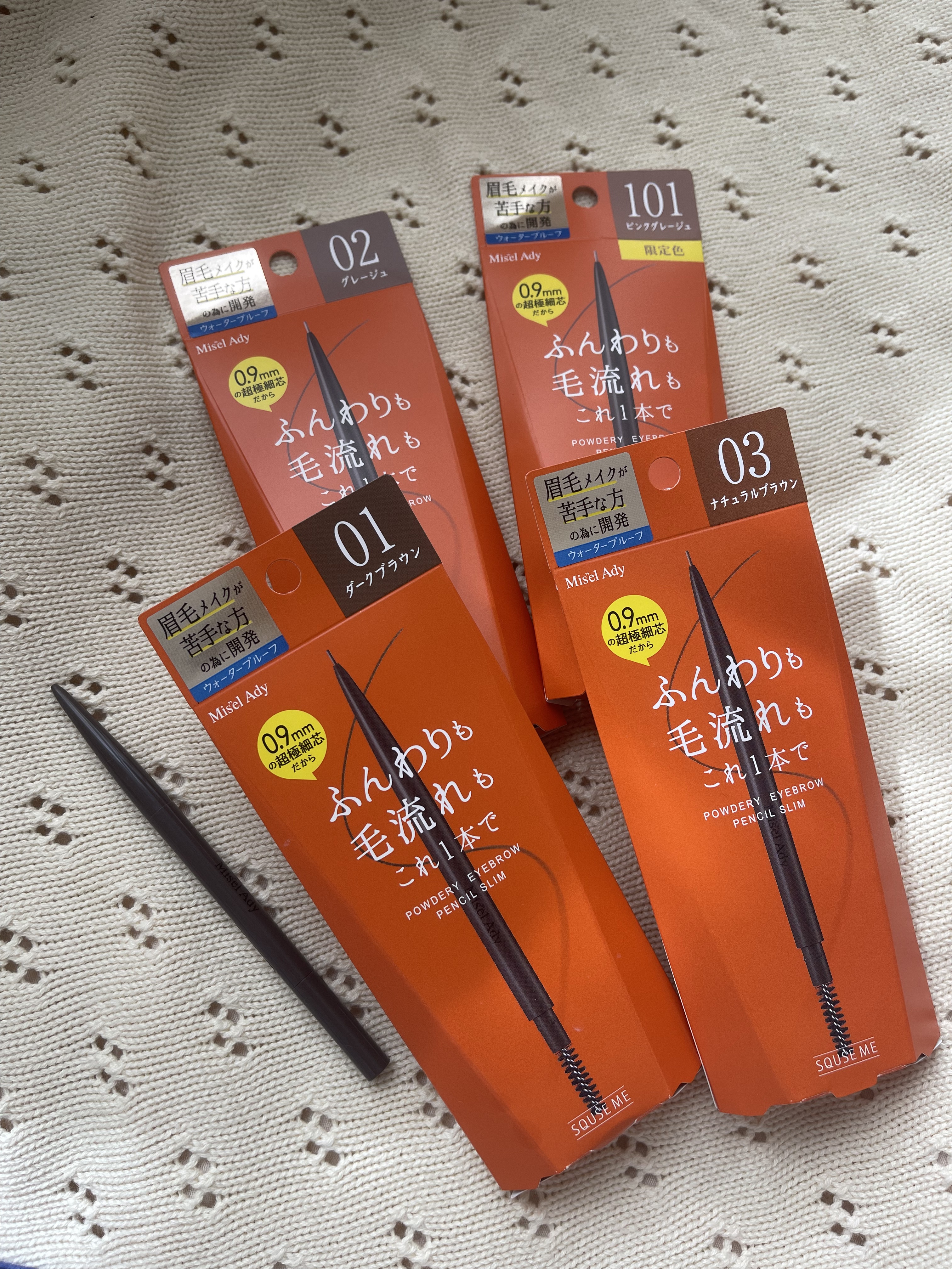 上手く描けないことが多い眉毛に救世主! スキューズミーMisel Ady パウダリーアイブロウペンシルスリム 最細0.84mm!! 折れやすく硬めの芯なので少しだけ繰り出して描くと毛並みも色づきも綺麗になります😍 カラバリ豊富で選びやすい! 少しずつ重ねて調整していくと綺麗に描けます😍