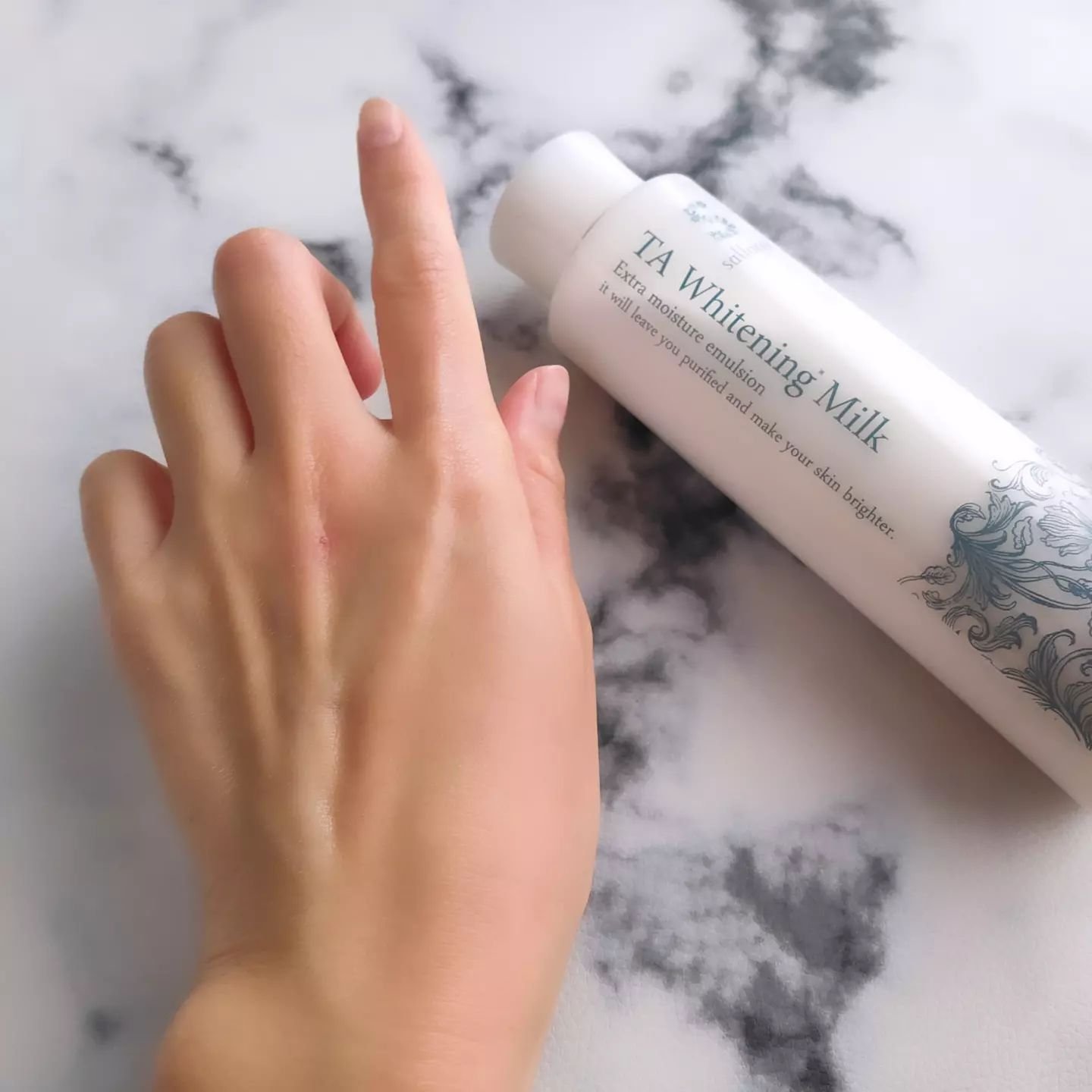美白有効成分「トラネキサム酸」をはじめメラニン抑制に有効とされる様々な成分を贅沢配合されています⭐︎ 角質層まで浸透し、まだ目には見えないシミ・肝斑の抑制からできてしまったシミまで徹底的に美白ケア!! さらに、ナノ化セラミドをはじめとする保湿×抗糖化成分もプラス!相乗効果で美白を妨げる肌のくすみもしっかりケア♪ プチプライスなのにちょっと贅沢なホワイトニングミルクで、潤いと美白を兼ね備えた、明るく透明感に満ちた肌へ✳︎ 保湿しながらホワイトニングが自宅で手軽にできるところがとても気に入っています♡ 使い始めてお肌のくすみが少しマシになってきたような、、?! このまま継続してケアしていきます✳︎