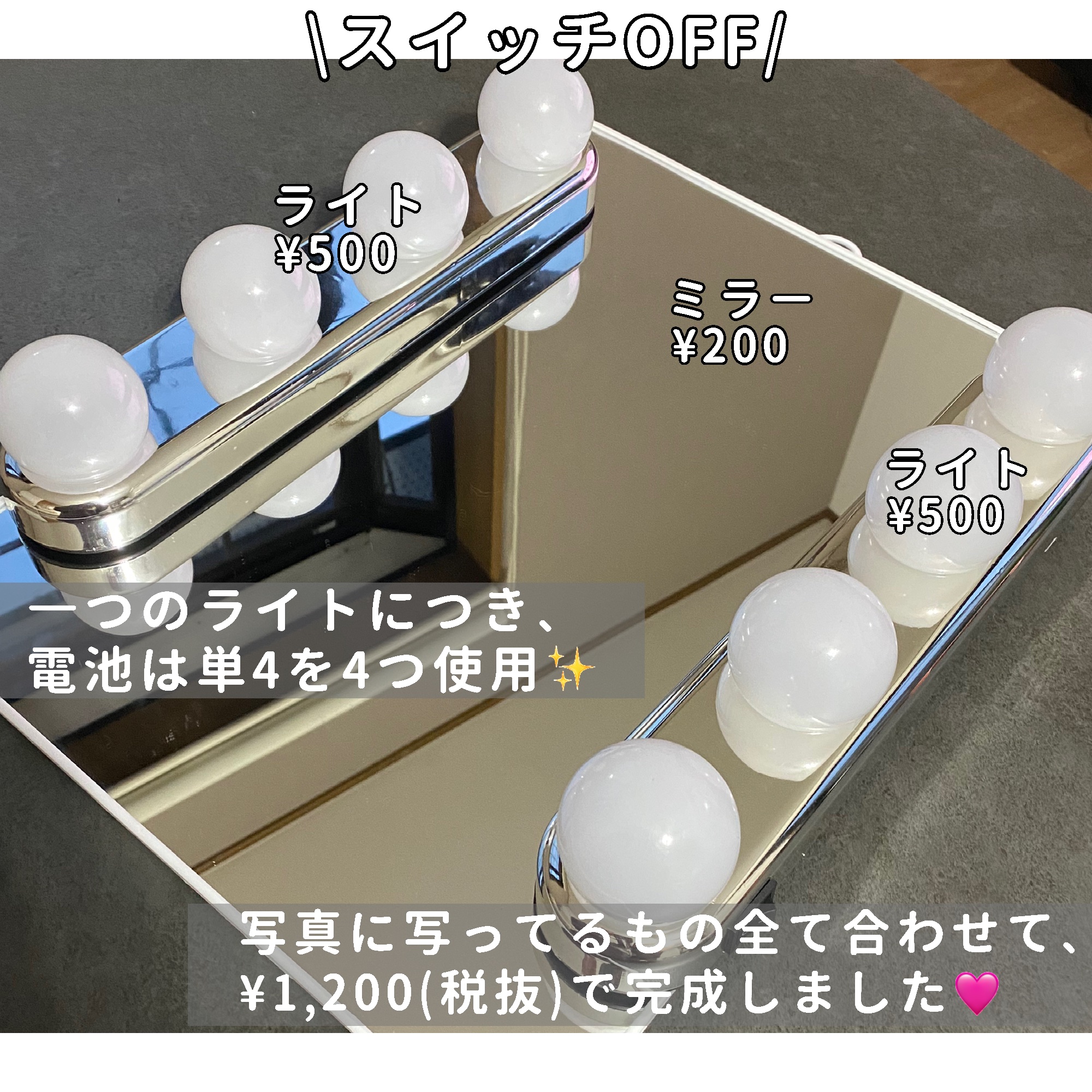 DAISOで¥220で購入しました✨ 普段、メイクの時には子供のポケットミラーを使用していました😅 シンプルなデザインでインテリアの邪魔をしない♡ 形は楕円と丸の2種類がありましたが悩んで私は楕円を選びました✨ 片面は拡大鏡✨ アイメイクや眉毛のお手入れ・セルフまつげパーマをする時など見やすくてとっても便利♡