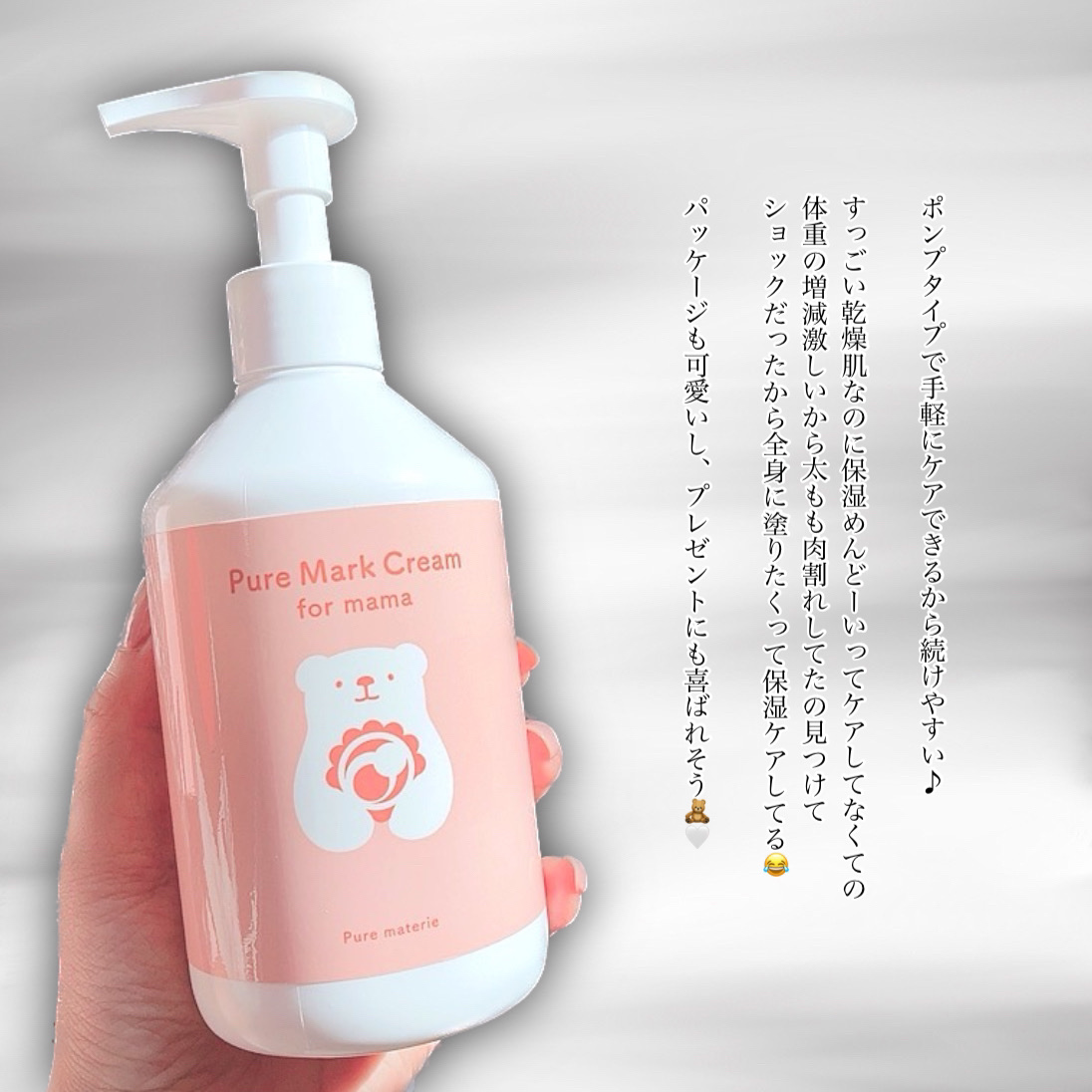 新しい低刺激、高保湿のスキンケアブランドのmaterie (マテリエ)が、pure materie (ピュアマテリエ)として生まれ変わったそう! 妊娠中・産後のボディケアにおすすめな無香料のボディクリーム💡 クマさんが書かれた可愛らしいパッケージ🧸 ポンプ式のクリームだから出しやすい! なめらかなテクスチャーのクリームで、伸びがよくてベタつかない! お肌をいたわってくれるようなとてもマイルドな使用感😊 8つのフリー処方なのも敏感な肌に嬉しい! (香料・着色料・パラベン・シリコン石油系界面活性剤・サルフェート鉱物油・アルコール[エタノール]不使用) 300g入ってるから、毎日たくさん使える💡 産前産後の敏感になりやすいお肌にやさしく寄り添ってくれるクリーム😌