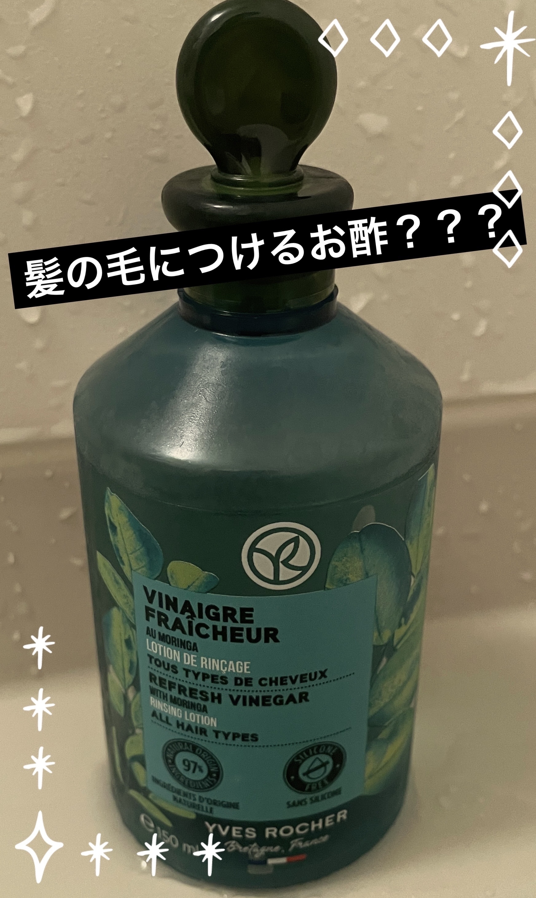 イヴ・ロシェリンシングビネガー・ピュアリフレッシュ うるつやモリンガ・シルキーシャイン さらキララズベリーこちらウエルシアでたまたま見つけて購入しました。コンディショナーやヘアマスクなどの後に頭皮や毛先に馴染ませて流すだけ!ビネガーのヘアトリ...