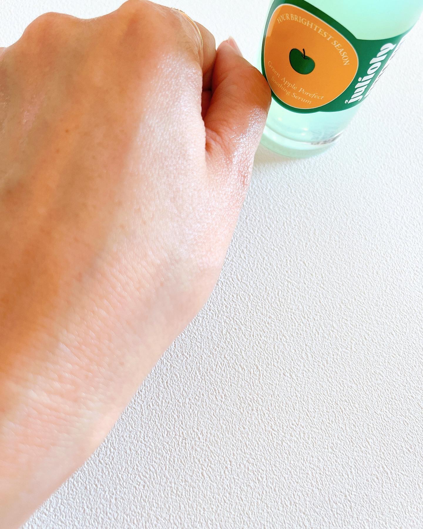リンゴエキス配合 АНА/ВНА/PHA/LHA配合 ツボクサエキス、クズの根エキス、ヨモギ、ティーツリーエキス、メマツヨイグサエキス配合 見た目がポップでとってもかわいい🍏💚 リンゴエキスにはポリフェノール、ミネラル、ビタミンB、ビタミンCが含まれているんだとか。 スポイトを容器から取り出すときに糸を引くくらいとろっとしています。 肌へのなじみはよくてべたつきにくい! インナードライ肌や脂性肌におすすめなんだそう。 青リンゴの爽やかな香りかな?と思いましたが、ほぼ無臭😳 毛穴悩みも肌荒れも同時に起きている私の肌に嬉しいかわいいセラムでした🍏🍏