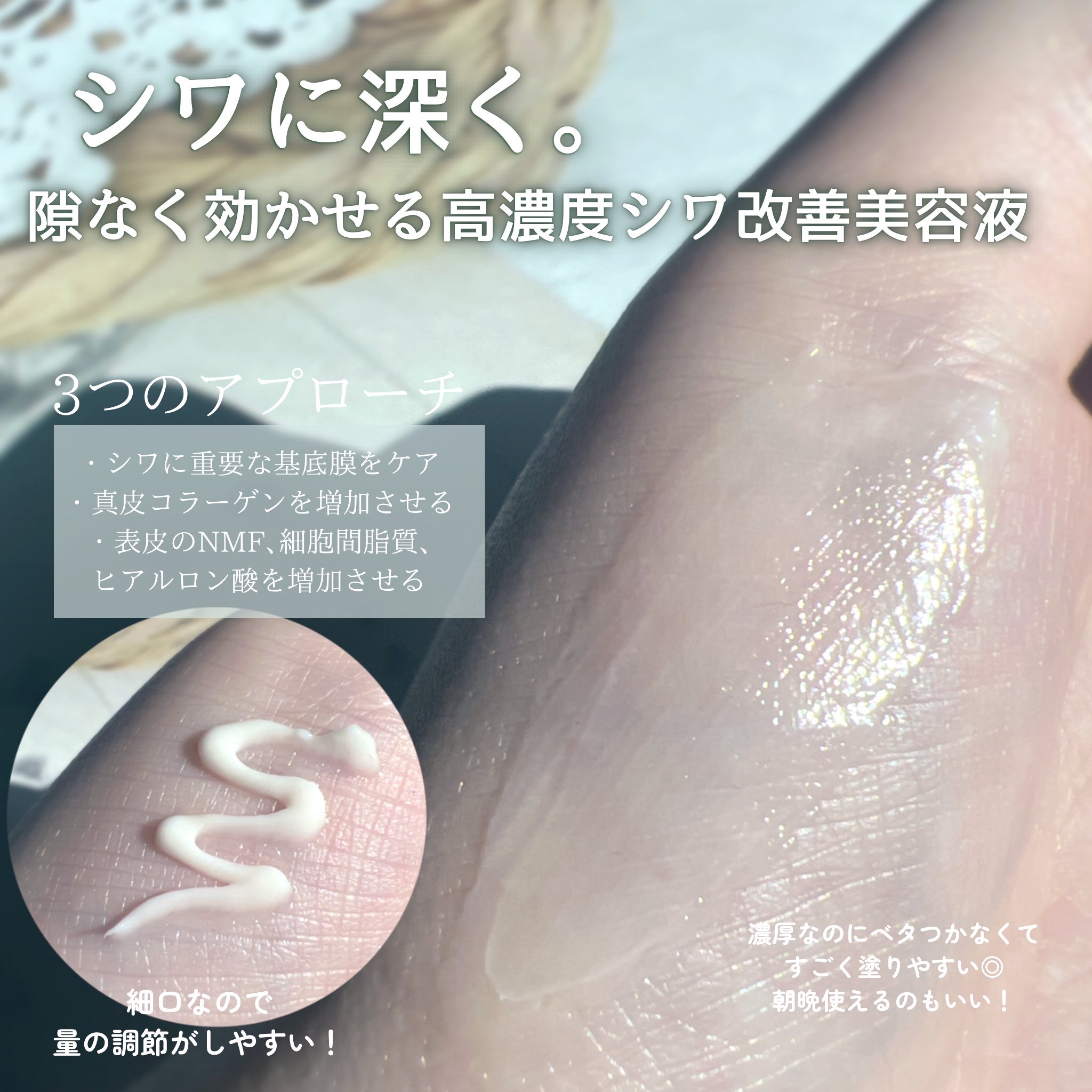 日本初! シワ改善、皮膚水分保持能の改善の 2つの改善効果が認められた ライスパワーNo.11+配合✨ 多角的にアプローチする シワ改善美容液です🤍 こっくりとしたクリームで伸びが良く お肌にすっとなじみます✨ 使い始めて1ヶ月が経ちましたが 目元の乾燥小ジワが少し薄くなって ふっくらしてきた気がします🥰