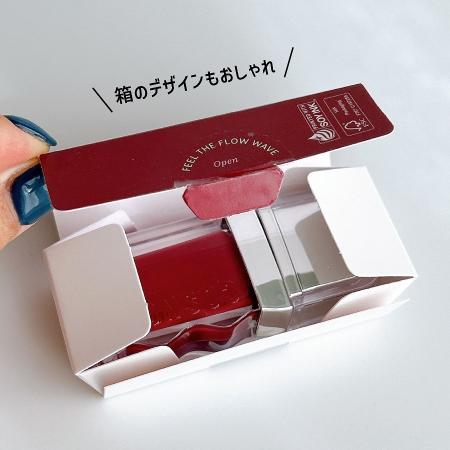 - <01 ソフィー(Surfy)> リンゴ酸ジイソステアリル、ジフェニルシロキシフェニルトリメチコン、精製水、ジフェニルジメチコン、ビスジグリセリルポリアシルアジペート-2、水添ポリイソブテン、ポリグリセリン-3、ポリソルベート60、セチルPEG/PPG-10/1ダイメチコン、イソステアリン酸ソルビタン、BG、ペンチレングリコール、1,2-ヘキサンジオール、ダイメジメチコン、アクリル酸ヒドロキシエチル/ナトリウムアクリロイルジメチルタウリン酸共重合体スクアラン、セテアレス-20、二酸化チタン、エチルヘキシルグリセリン、赤色227号、黄色5 号、香料、赤色104号(1)、水酸化酸化アルミニウム、ポリアクリル酸アンモニウム溶液、黄色4号、フェノキシエタノール、マカデミア種子油、ローズヒップ油、ツバキ油、トコフェロール <02 ピンクラッシュ(Pinkrush)> リンゴ酸ジイソステアリル、ジフェニルシロキシフェニルトリメチコン、精製水、ビスジグリセリルポリアシルアジペート-2、ジフェニルジメチコン、水添ポリイソブテン、ポリグリセリン-3、ポリソルベート60、セチルPEG/PPG-10/1ダイメチコン、イソステアリン酸ソルビタン、BG、ダイメジメチコン、ペンチレングリコール、1,2-ヘキサンジオール、アクリル酸ヒドロキシエチル/ナトリウムアクリロイルジメチルタウリン酸共重合体スクアラン、セテアレス-20、二酸化チタン、エチルヘキシルグリセリン、赤色227号、黄色5 号、香料、水酸化酸化アルミニウム、ポリアクリル酸アンモニウム溶液、フェノキシエタノール、マカデミア種子油、ローズヒップ油、ツバキ油、トコフェロール <03 グレア(Glare) > リンゴ酸ジイソステアリル、ジフェニルシロキシフェニルトリメチコン、精製水、ビスジグリセリルポリアシルアジペート-2、ジフェニルジメチコン、水添ポリイソブテン、ポリグリセリン-3、ポリソルベート60、セチルPEG/PPG-10/1ダイメチコン、イソステアリン酸ソルビタン、BG、ペンチレングリコール、1,2-ヘキサンジオール、ダイメジメチコン、アクリル酸ヒドロキシエチル/ナトリウムアクリロイルジメチルタウリン酸共重合体スクアラン、セテアレス-20、二酸化チタン、エチルヘキシルグリセリン、黄色5 号、香料、赤色104号(1)、赤色227号、水酸化酸化アルミニウム、ポリアクリル酸アンモニウム溶液、黄色4号、フェノキシエタノール、ブリリアントブルーFCF、マカデミア種子油、ローズヒップ油、ツバキ油、トコフェロール <04 ウィッティー(Witty)> リンゴ酸ジイソステアリル、ジフェニルシロキシフェニルトリメチコン、精製水、ビスジグリセリルポリアシルアジペート-2、ジフェニルジメチコン、水添ポリイソブテン、ポリグリセリン-3、ポリソルベート60、セチルPEG/PPG-10/1ダイメチコン、イソステアリン酸ソルビタン、BG、ダイメジメチコン、ペンチレングリコール、1,2-ヘキサンジオール、アクリル酸ヒドロキシエチル/ナトリウムアクリロイルジメチルタウリン酸共重合体スクアラン、セテアレス-20、二酸化チタン、黄色5 号、赤色227号、エチルヘキシルグリセリン、香料、水酸化酸化アルミニウム、ポリアクリル酸アンモニウム溶液、フェノキシエタノール、マカデミア種子油、ローズヒップ油、ツバキ油、トコフェロール <05 パンチ(Punch)> リンゴ酸ジイソステアリル、ジフェニルシロキシフェニルトリメチコン、精製水、ジフェニルジメチコン、ビスジグリセリルポリアシルアジペート-2、水添ポリイソブテン、ポリグリセリン-3、ポリソルベート60、セチルPEG/PPG-10/1ダイメチコン、イソステアリン酸ソルビタン、BG、ペンチレングリコール、1,2-ヘキサンジオール、ダイメジメチコン、アクリル酸ヒドロキシエチル/ナトリウムアクリロイルジメチルタウリン酸共重合体二酸化チタン、スクアラン、セテアレス-20、黄色5 号、エチルヘキシルグリセリン、香料、赤色227号、赤色104号(1)、水酸化酸化アルミニウム、ポリアクリル酸アンモニウム溶液、フェノキシエタノール、マカデミア種子油、ローズヒップ油、ツバキ油、トコフェロール <06 ディア(Dear)> リンゴ酸ジイソステアリル、ジフェニルシロキシフェニルトリメチコン、精製水、ジフェニルジメチコン、ビスジグリセリルポリアシルアジペート-2、水添ポリイソブテン、ポリグリセリン-3、ポリソルベート60、セチルPEG/PPG-10/1ダイメチコン、イソステアリン酸ソルビタン、BG、ペンチレングリコール、1,2-ヘキサンジオール、ダイメジメチコン、アクリル酸ヒドロキシエチル/ナトリウムアクリロイルジメチルタウリン酸共重合体スクアラン、セテアレス-20、二酸化チタン、エチルヘキシルグリセリン、黄色5 号、赤色227号、香料、水酸化酸化アルミニウム、黄色4号、ポリアクリル酸アンモニウム溶液、フェノキシエタノール、マカデミア種子油、ブリリアントブルーFCF、ローズヒップ油、ツバキ油、トコフェロール <07 カインド(Kind)> リンゴ酸ジイソステアリル、ジフェニルシロキシフェニルトリメチコン、精製水、ジフェニルジメチコン