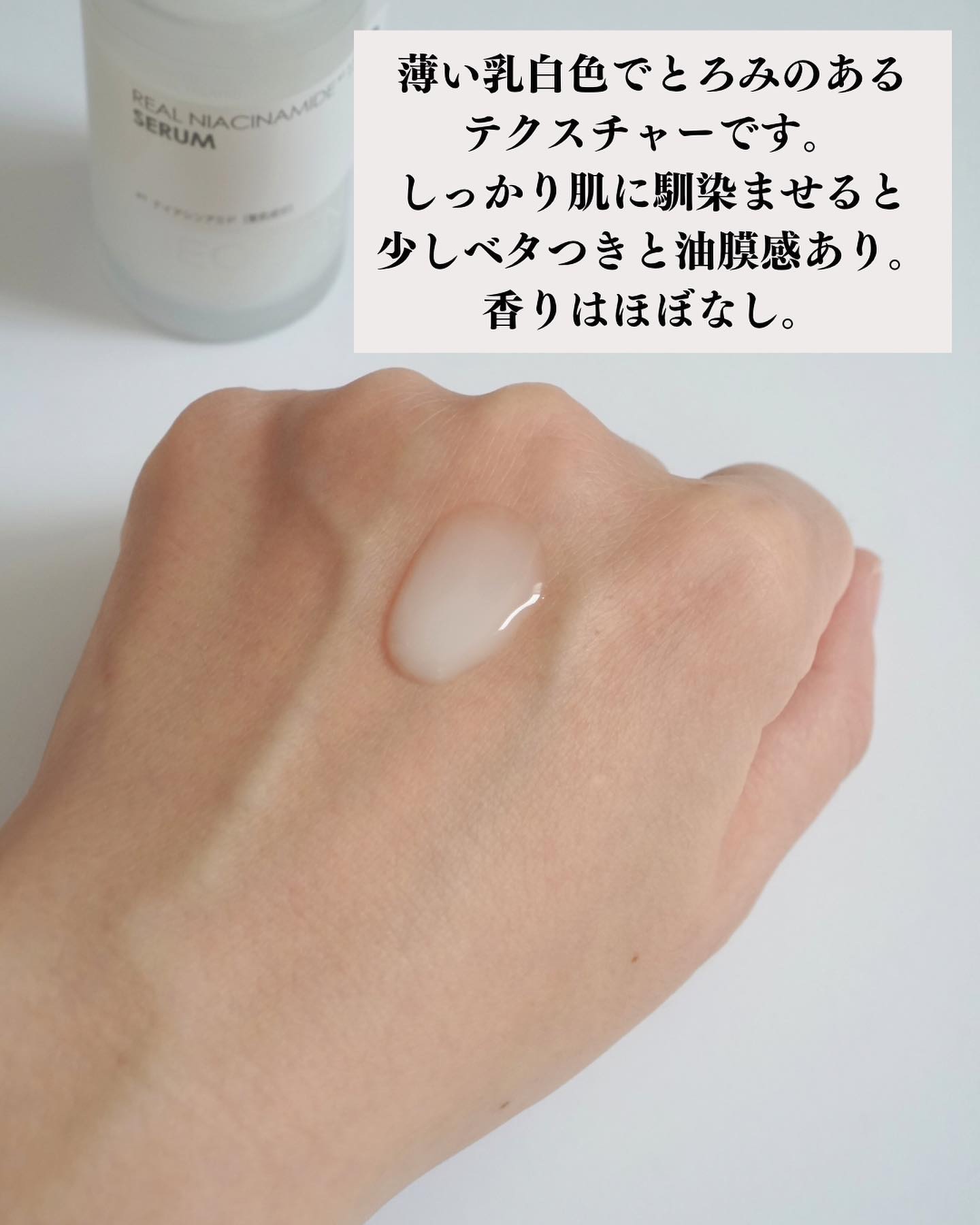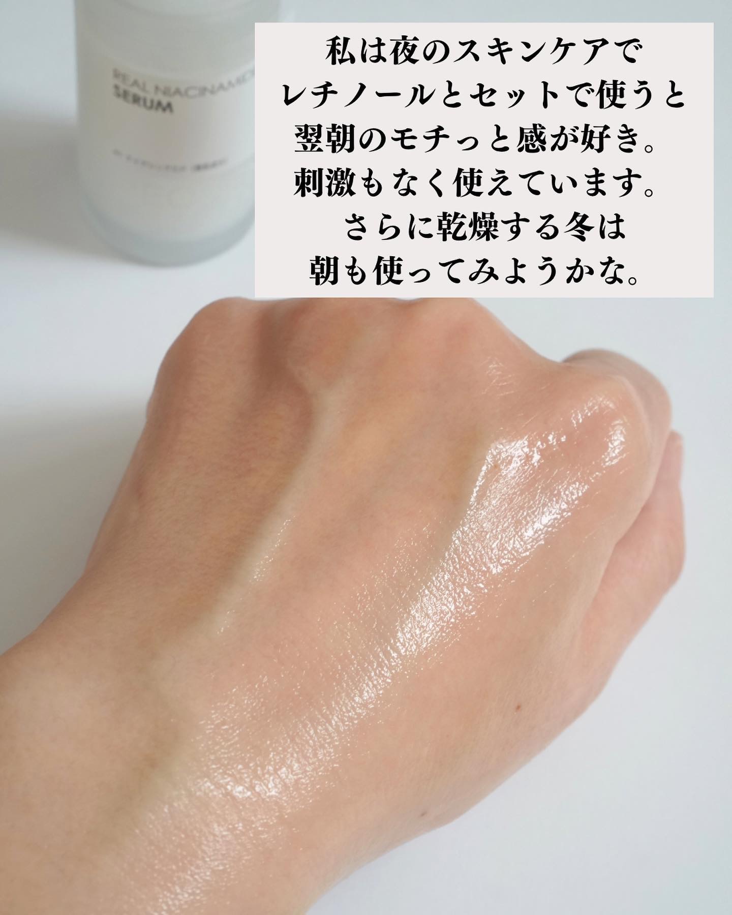 ナイアシンアミド15%配合で肌のくすみにアプローチ🤍 テクスチャーはややとろみ、柔らかく伸び肌なじみがよくベタつきなし! キメが整いもっちり仕上がり 香りもなく使いやすい︎👍🏻 ̖́- 高配合でこの使いやすさはとてもありがたい🥹💗 リピして使い続けたいです✨️