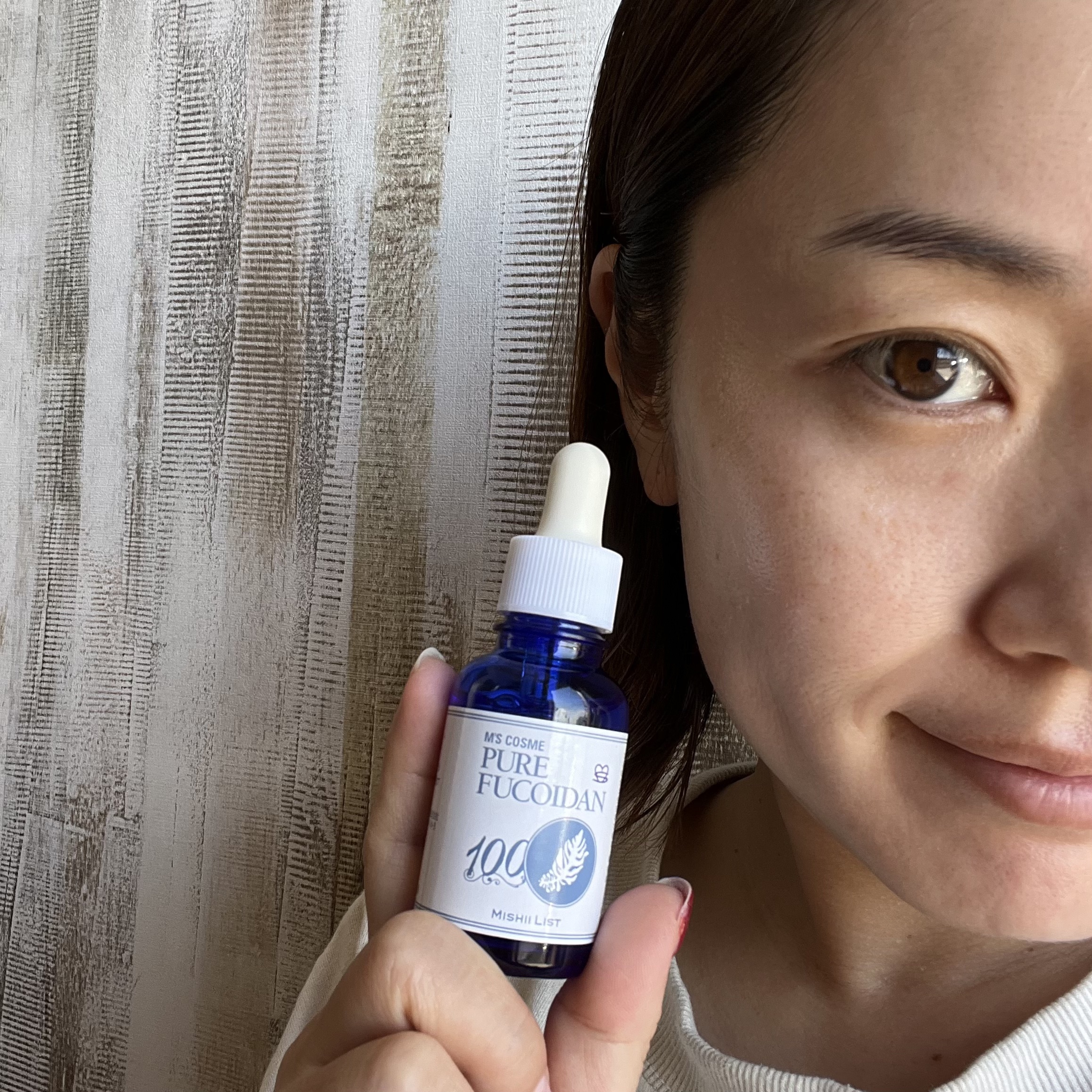 浸透力が高く、肌に潤いを与える希少成分であるフコイダン原液を100%使用してあります。 洗顔後、初めに付ける美容液。とろみがあるけど、お肌に馴染みやすく塗った後はもちっとした肌触りに。 いつものスキンケアにプラスして使えるのも◎