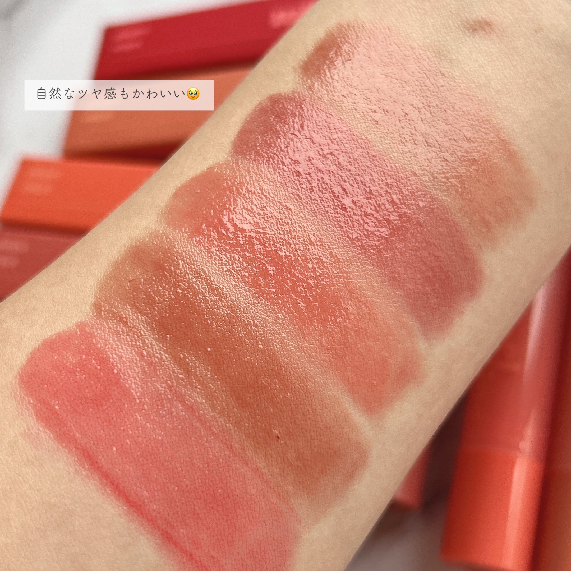 もう、初めて使った時からこの仕上がりのぷるぷる感に一目惚れして とろけるようなテクスチャで、縦皺を消すように オイルや水分感で満たしてくれるリップです💄 写真の通り、ほんっとうにプルプルでつるんとした仕上がりが 何度みても可愛い……💖 ずっと唇がしっとりしていて、優しい使い心地が嬉しい😌💕💕 色味はソルベバームが1番すきなので、久しぶりにライトウォームトーンのメイクもしたくなります、、、 確実に今年のベスコス入りだな〜〜〜