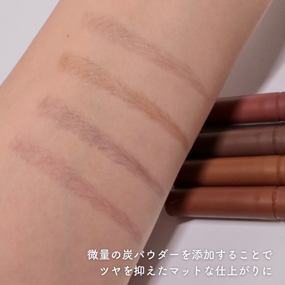 - 炭パウダー配合!ふんわり眉が長時間つづくリキッドアイブロウ! リキッドだけどテカらず、パウダリーな仕上がり。 リキッドだから眉尻まで長時間消えにくい! 本物のまゆげにみせる自然な薄付き発色 01 クルミブラウン…迷ったらこれ!使いやすい人気のブラウン 02 シトロンブラウン…明るめ黄みブラウン 03 セサミグレージュ…少し暗めのやわらかいグレージュ 04 ラズベリーブラウン…可愛い印象になるピンクブラウン
