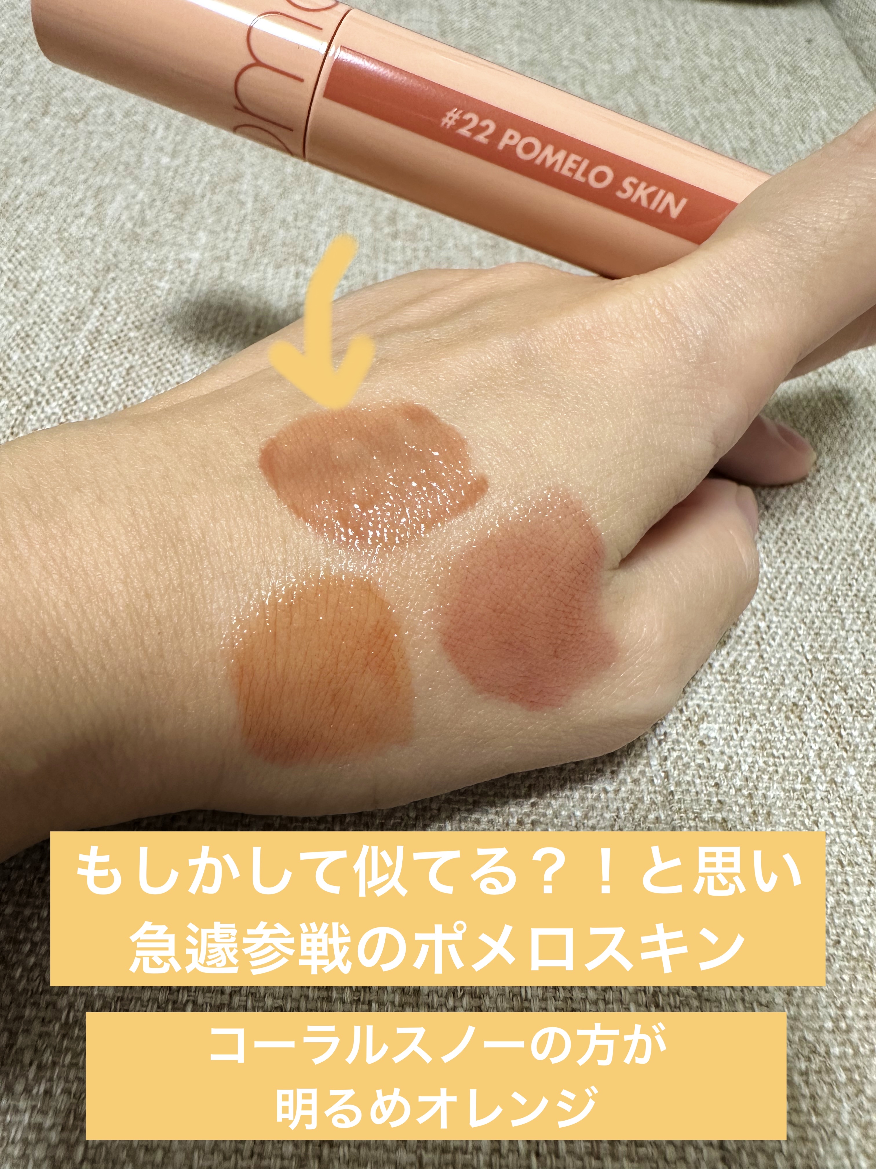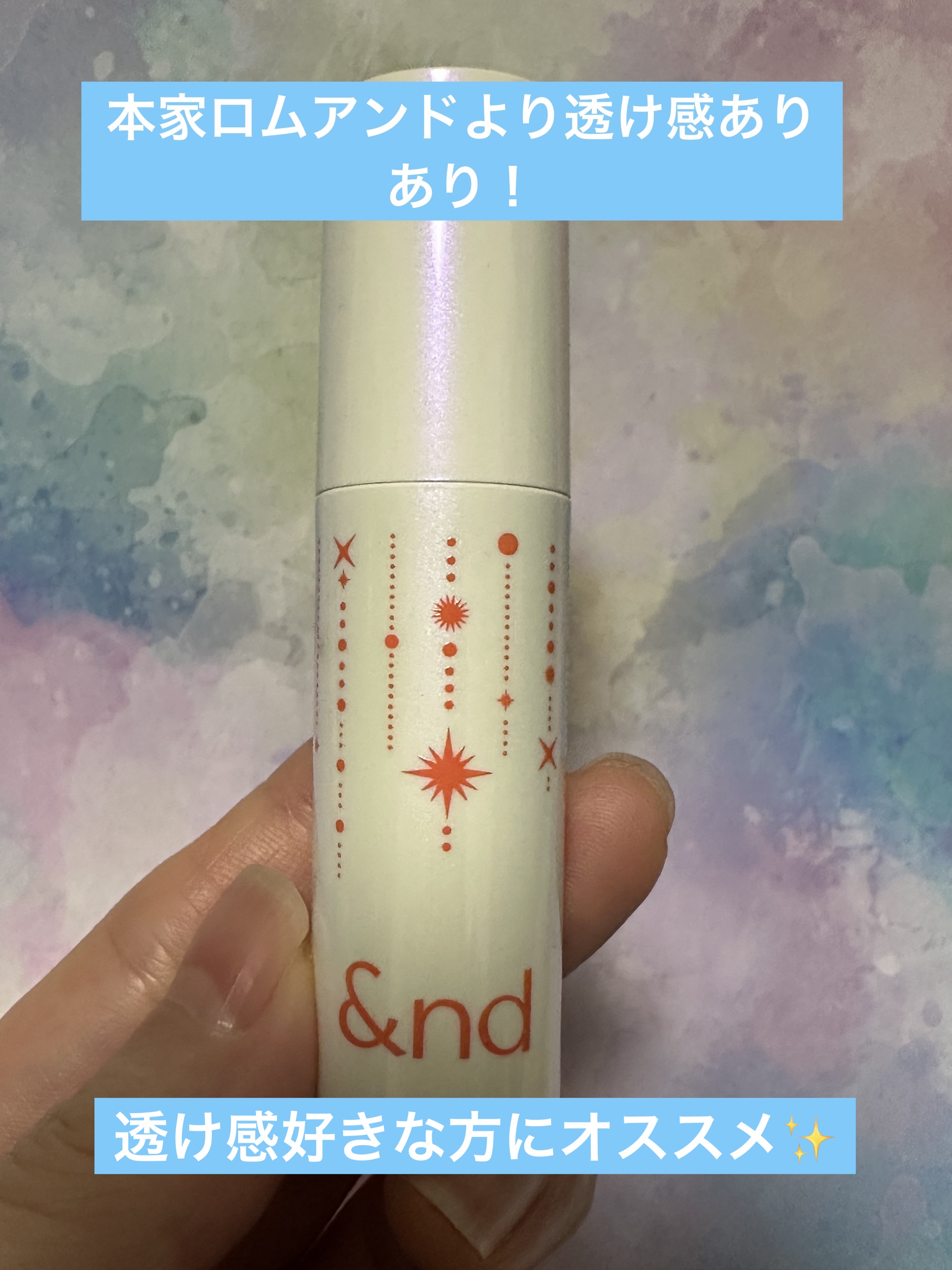 最初塗った瞬間は素の唇の色に近すぎて塗る意味ってあるのか???と思いましたが(笑) 素の唇とのわずかな色の差でもちゃんと塗ってる感って出るものですね👄 篠○涼子みたいな大人っぽさが出せる気がする(伝われ…)のでお仕事メイクにもオススメ! rom&ndのジューシーラスティングティントなど好きなのですがオフィスではちょっと派手かなって思ってました。 テカテカ感が少ない&お色味のおかげでこちらの方がオフィスで使いやすそうです。