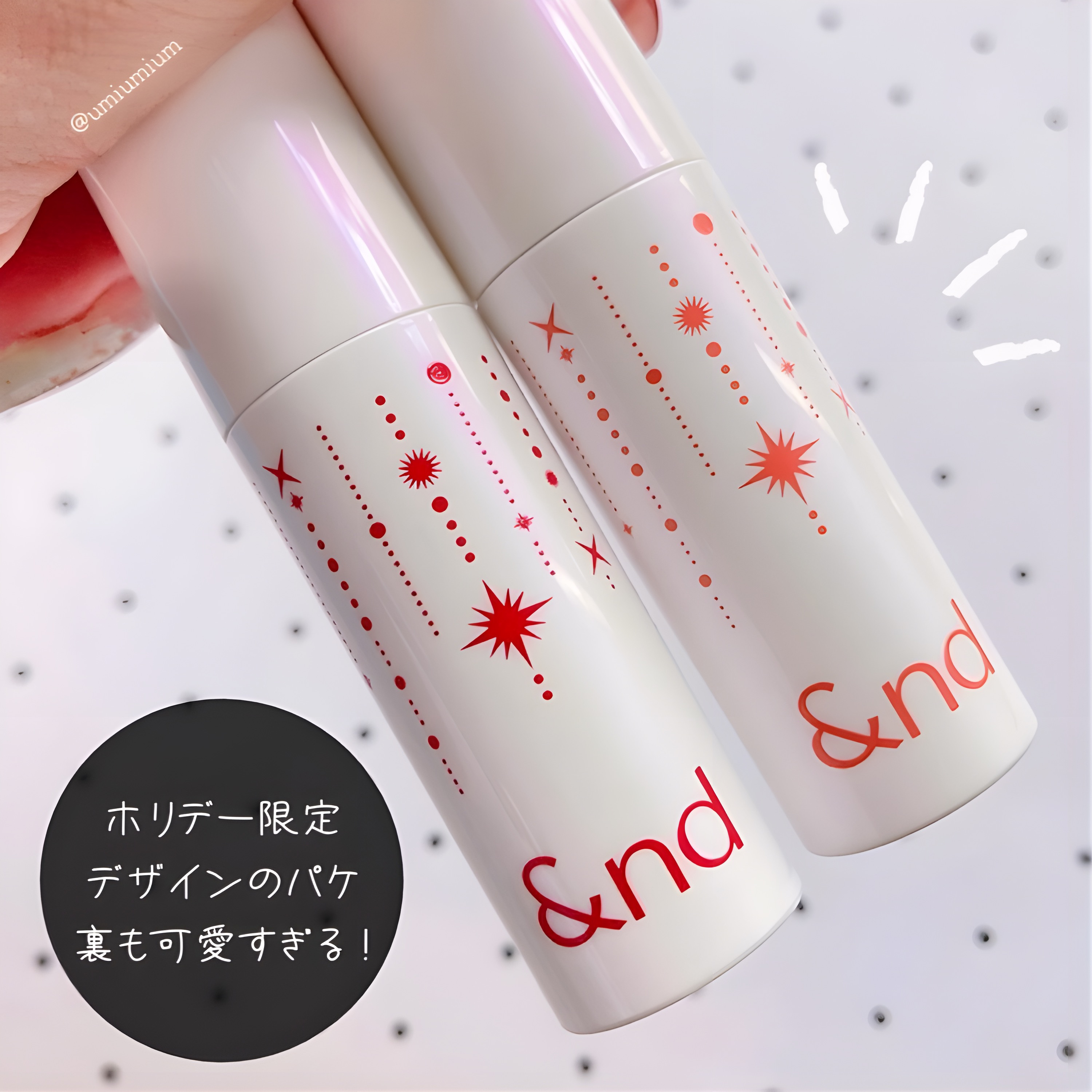 アンドバイロムアンドのホリデー限定ティント。色もち最高、ラメも残る…これは大人気になる予感🫢💓💓 香りはグレープの香りで癖になる香りです🤤💜 イエベ春の私はHL03の色味が好みでした!流行りのうさぎ舌リップの色味🐇💗