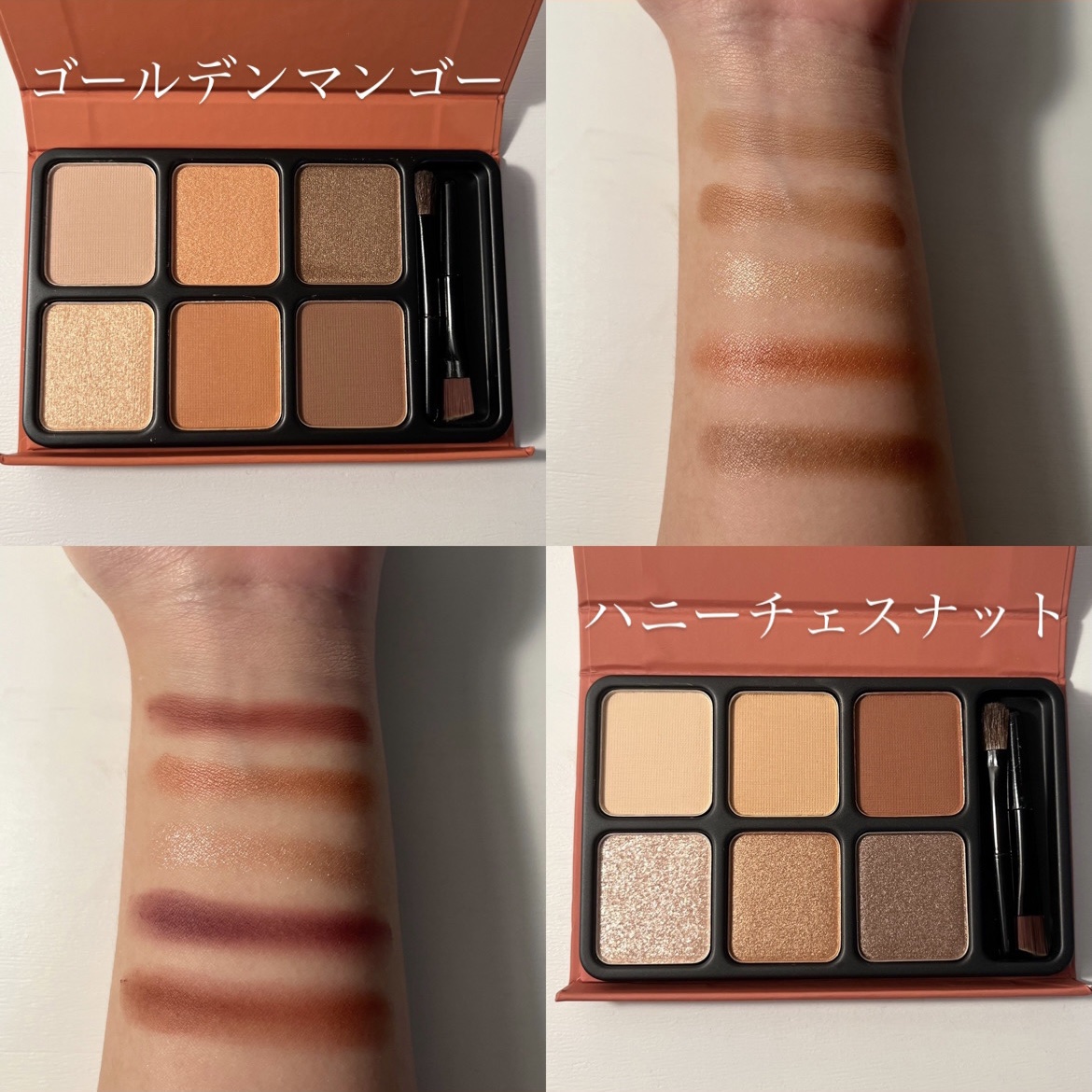 使いやすい6色のカラーで、春メイクにピッタリ✨ マットでこっくりメイクもラメを足してツヤ感のあるメイクもできちゃうの❤️ 微細パウダーで高密着で崩れにくいから初心者さんでもメイクしやすいパレットだと思う🥰 ひとつのパレットで色んなメイクが楽しめるしグラデーションもしやすくて今日はどんなメイクしようかな〜って悩んだ時に1番手に取っちゃう💓